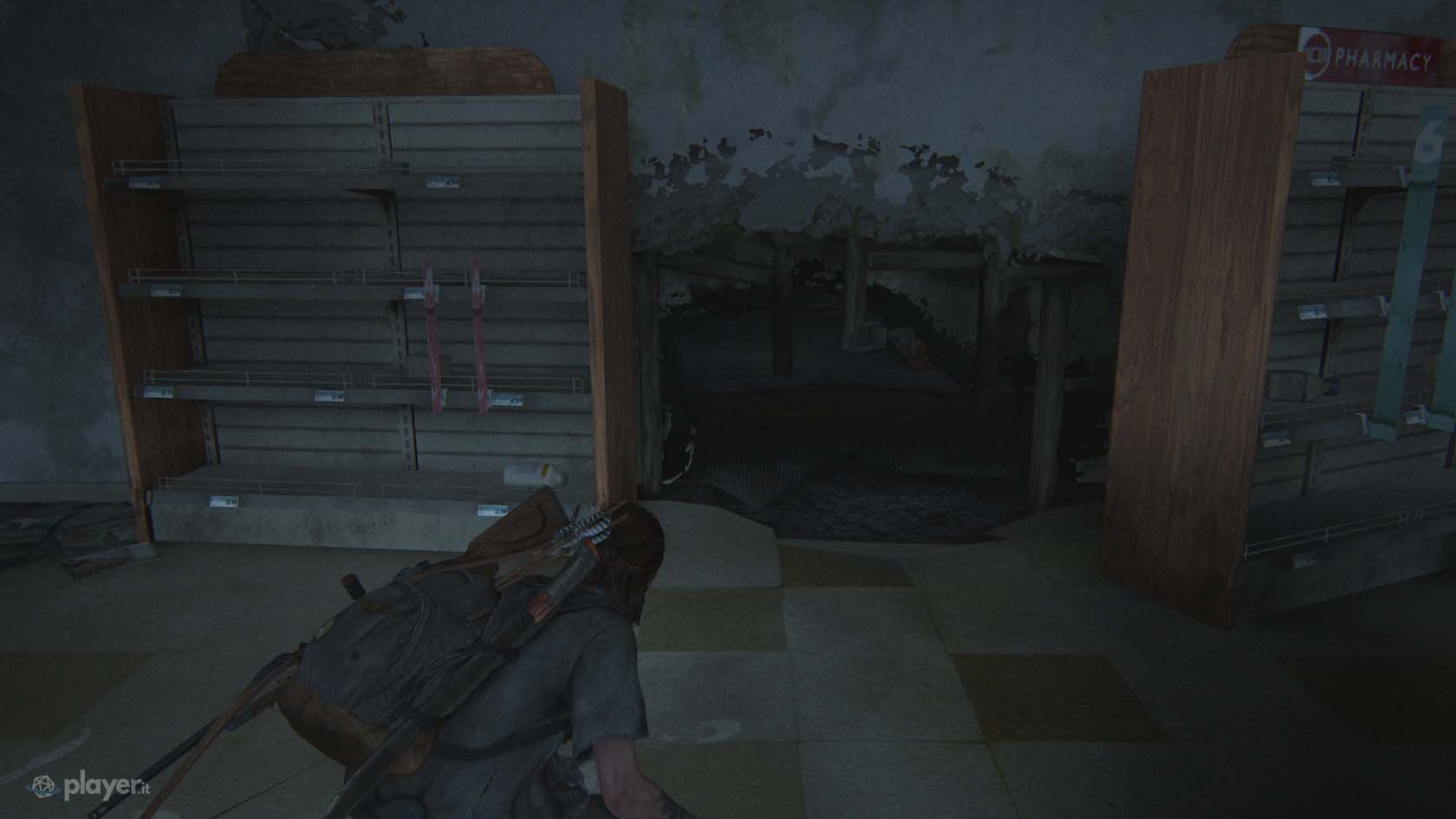 Banco 2: Verso l’acquarioNell’edificio con i manichini alla fine del capitolo, prima di salire verso destra e raggiungere il ponte indicato dal vostro compagno, salite tra le macerie a sinistra per trovare una stanza con il banco.
