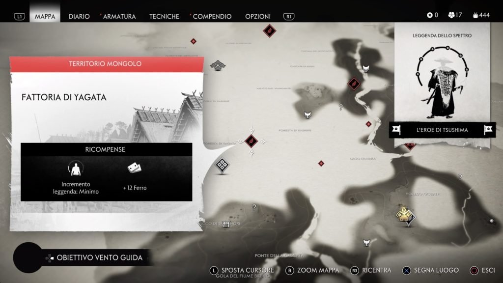 Recatevi lì e liberate ogni villaggio elencato. Uccidete dunque tutti i mongoli lì presenti e liberate gli ostaggi. Fatto questo, un abitante si avvicinerà a voi e, dopo avervi ringraziato, vi darà una chiave. Ottenute tutte le chiavi, potrete andare a riscattare l’armatura nell’entrata segreta che vedete nell’immagine in basso.