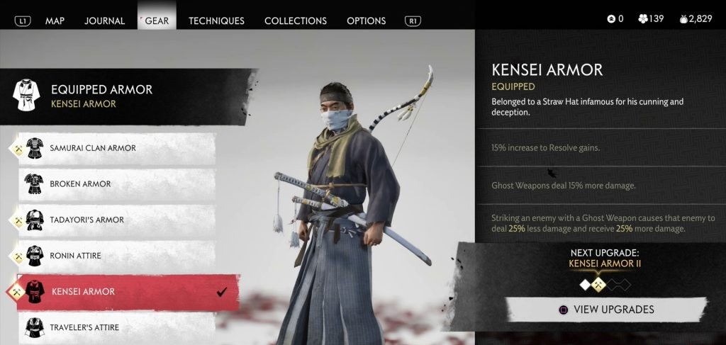 Se volete diventare uno Spettro, l’armatura Kensei è la migliore perché offre dei bonus ad ogni utilizzo delle armi fantasma. Se utilizzata nel modo corretto, l’armatura Kensei consente di liberare Forti e villaggi senza farsi notare grazie all’efficacia dei kunai e può portare un eventuale scontro a nostro vantaggio grazie all’estrema potenza che acquisiscono le bombe adesive.