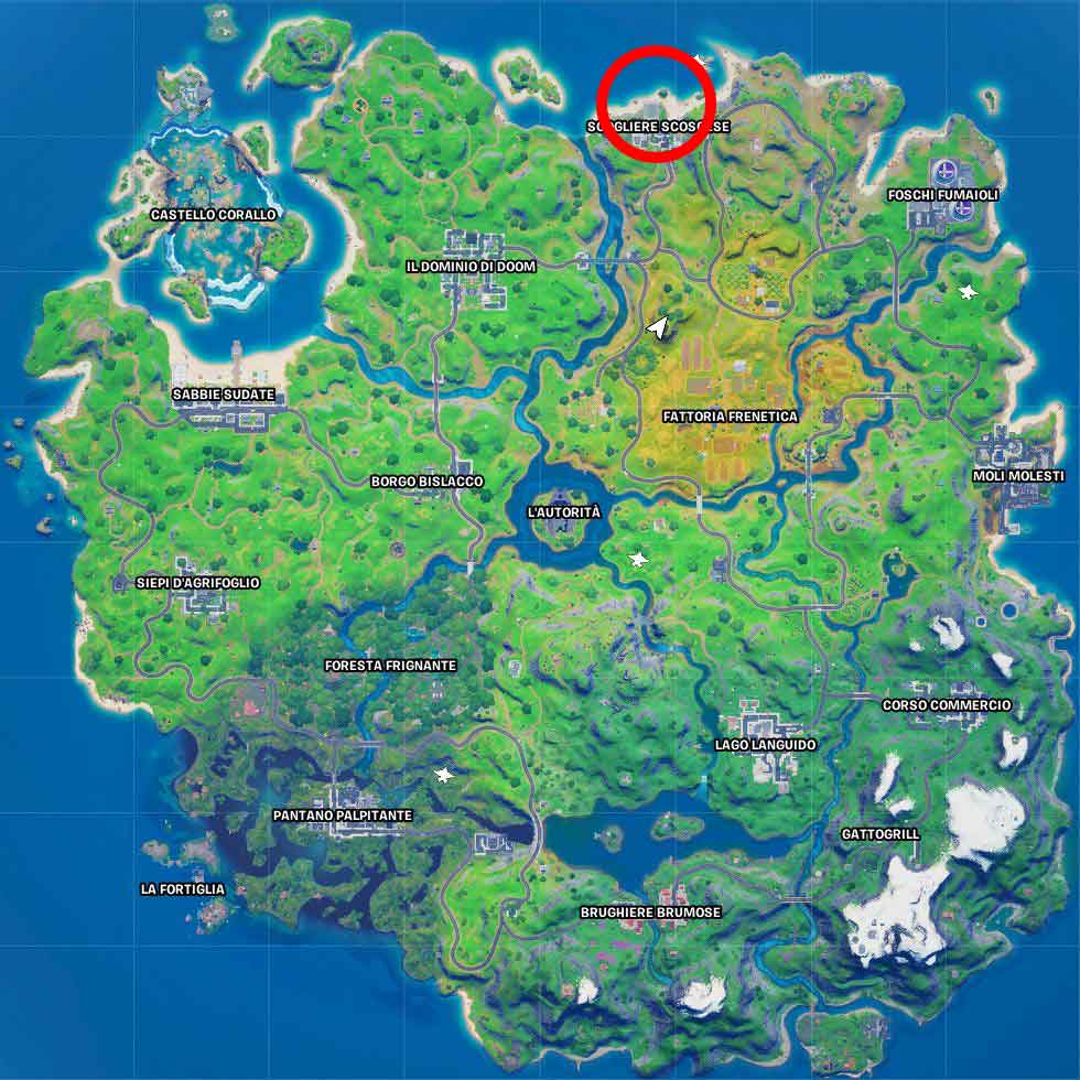 Per completare questa sfida in sostanza ci conviene in primis andare presso la location di Scogliere Scoscese, presso le coordinate E1\F1 della mappa di gioco e lì recuperare un motoscafo.