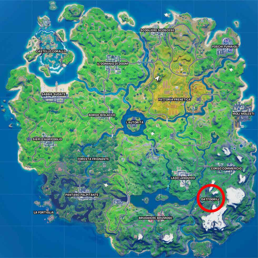 L’ultima sfida chiede al giocatore di infliggere 500 danni agli avversari che si trovano presso la zona di Gattogrill, zona della mappa digioco presente presso le coordinate G7. Non sono importanti le armi o il numero di partite ma solo il numero dei danni inflitti, motivo per cui armatevi solo di pazienza e buona mira per completare la sfida.