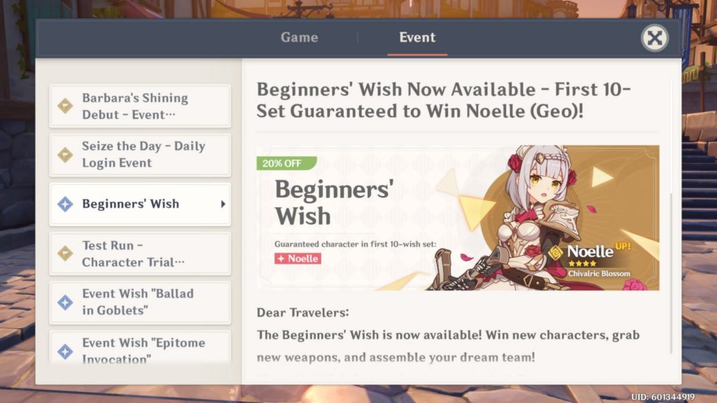 Il primo metodo naturalmente è il più immediato e vi permette di esprimere quanti desideri volete a seconda della grandezza del vostro portafoglio. Vi ricordiamo però che non è possibile acquistare direttamente un personaggio, ma solo dei Cristalli della Genesi, scambiabili per Primogemme che possono poi essere usate per esprimere desideri singolarmente o a gruppi di 10. In questo modo avrete la possibilità di ottenere un personaggio con un livello di rarità pari a 5 stelle o un arma dello stesso livello di rarità. Inizialmente avrete però solo lo 0.6% di trovare uno di questi personaggi e quindi dovrete esprimere parecchi desideri (e di conseguenza spendere molti soldi) per trovare quello che preferite. Ogni 10 desideri però avrete anche un personaggio o un’arma 4 stelle assicurati e vi assicuriamo che anche questi possono essere molto utili soprattutto all’inizio del gioco.