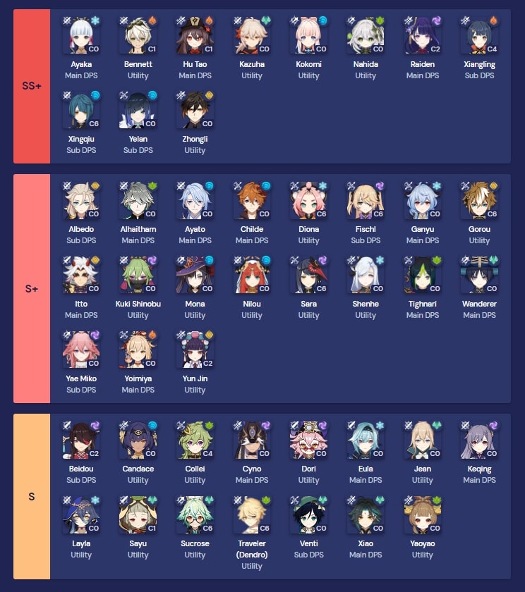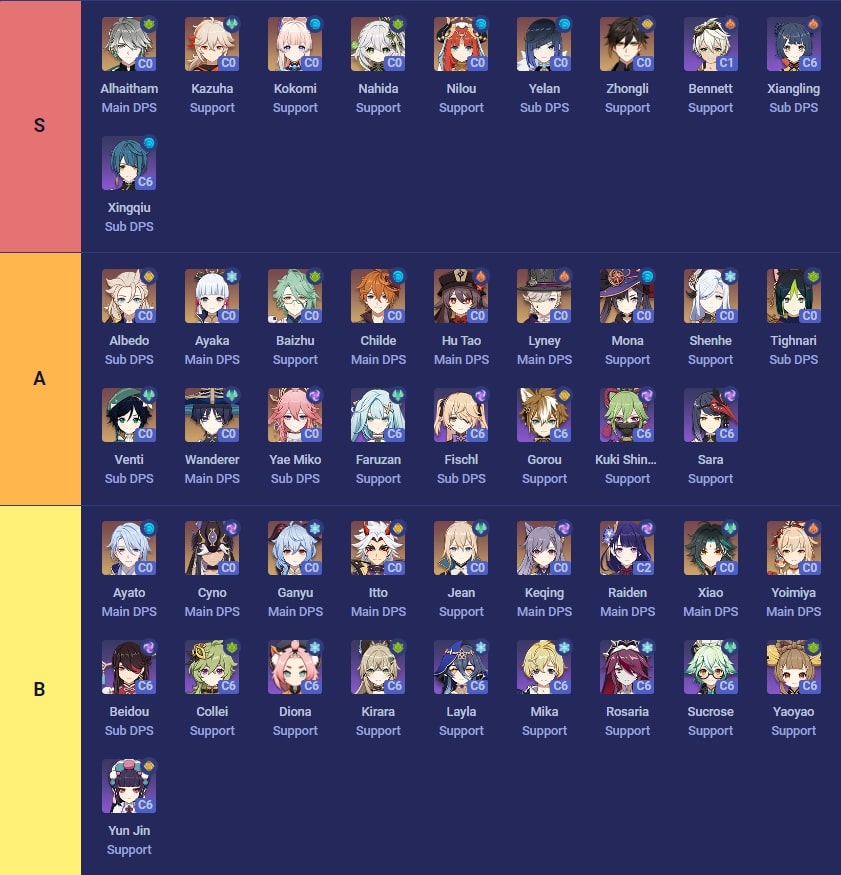 Nella tabella sottostante trovate invece le info tier su tutti i personaggi più forti attualmente presenti nel gioco dal tier S fino al tier B. Ricordatevi comunque che ogni personaggio può brillare se buildato bene, quindi non fatevi influenzare troppo e pullate i vostri preferiti prima di ogni cosa!