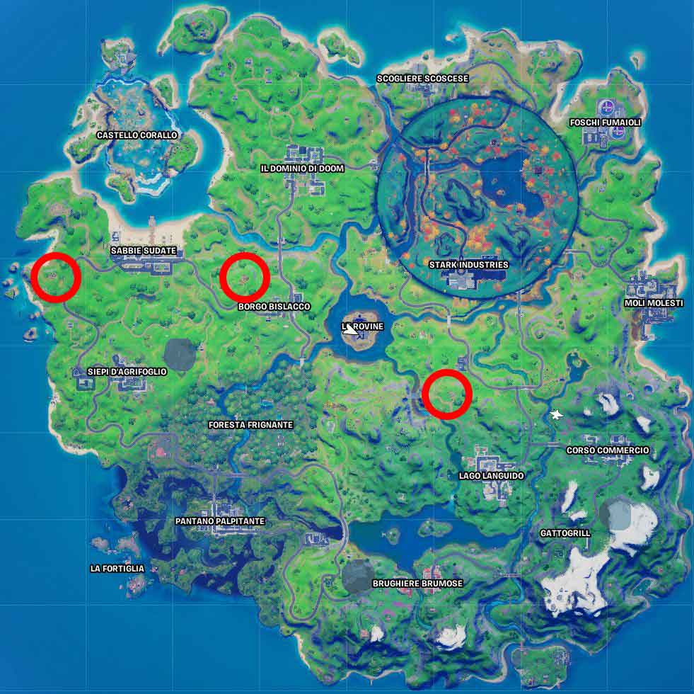 Al centro della mappa di gioco l’agenzia ha lasciato il posto a diversi luoghi; con l’arrivo di halloween Epic Games ha rinominato tale location le rovine ed esse nel loro livello più basso è possibile trovare mida spettrale.