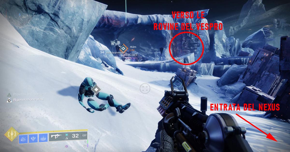 Uscite da Perdizione e dirigetevi verso la seconda grossa area di Europa, l’Abisso di Asterion. Vicino all’entrata del Nexus, il luogo in cui si entra per l’Assalto Ponte di Vetro, troverete l’Exo morto che vi serve.