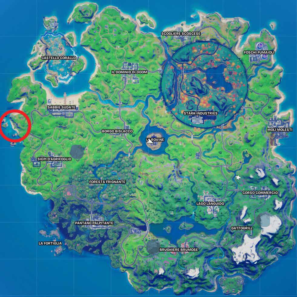 Questa sfida, molto particolare, chiede al giocatore di eseguire una emote di ballo in un luogo molto specifico della mappa. Questo evento, legato all’arrivo di Galactus, può essere completato soltanto danzando sul tetto dell’edificio che abbiamo mostrato sulla mappa, nella zona A4, a sud ovest di sabbie sudate e a nord ovest di Siepi D’Agrifoglio.