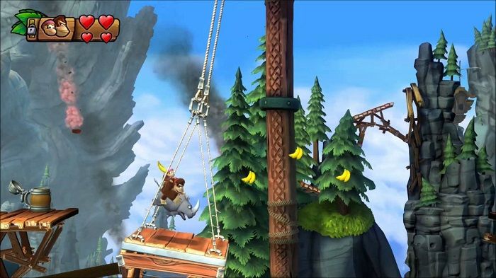 Se hai giocato a Donkey Kong Country Returns, sarai già un maestro nel controllo di Donkey. Ma non ti preoccupare se non l’hai fatto! Donkey Kong può camminare, rotolare e correre, saltare e afferrare oggetti sospesi come corde, ed eseguire colpi a terra per rompere parti di terreno fragile o ostacoli (come scatole). Il colpo dall’alto può anche essere usato vicino ai nemici per stordirli temporaneamente. Può sconfiggere alcuni nemici calpestandoli, ma qualsiasi cosa abbia punte acuminate diventa mortale.