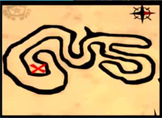 Questa è la mappa che il gioco fornisce ai giocatori. Essa si trova all’interno di un capanno nella zona più occidentale di Borgo Bislacco, attaccata a una parete.
