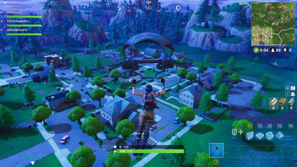 Parco pacifico è grossolanamente diviso in quattro quartieri di forma quadrata e una piazza centrale che funge da vera e propria terra di nessuno per i giocatori sventurati che ci si ritroveranno inermi sotto il fuoco di più squadre. Ogni quadrante offre le stesse possibilità di sopravvivenza vista la presenza di armi in quantità e di 1/2 scrigni a seconda della potere del caso. Di norma atterrando all’interno di una delle case poste ai bordi della zona sarà possibile riempirsi di munizioni e risorse per poi dominare il resto della zona con più tranquillità.