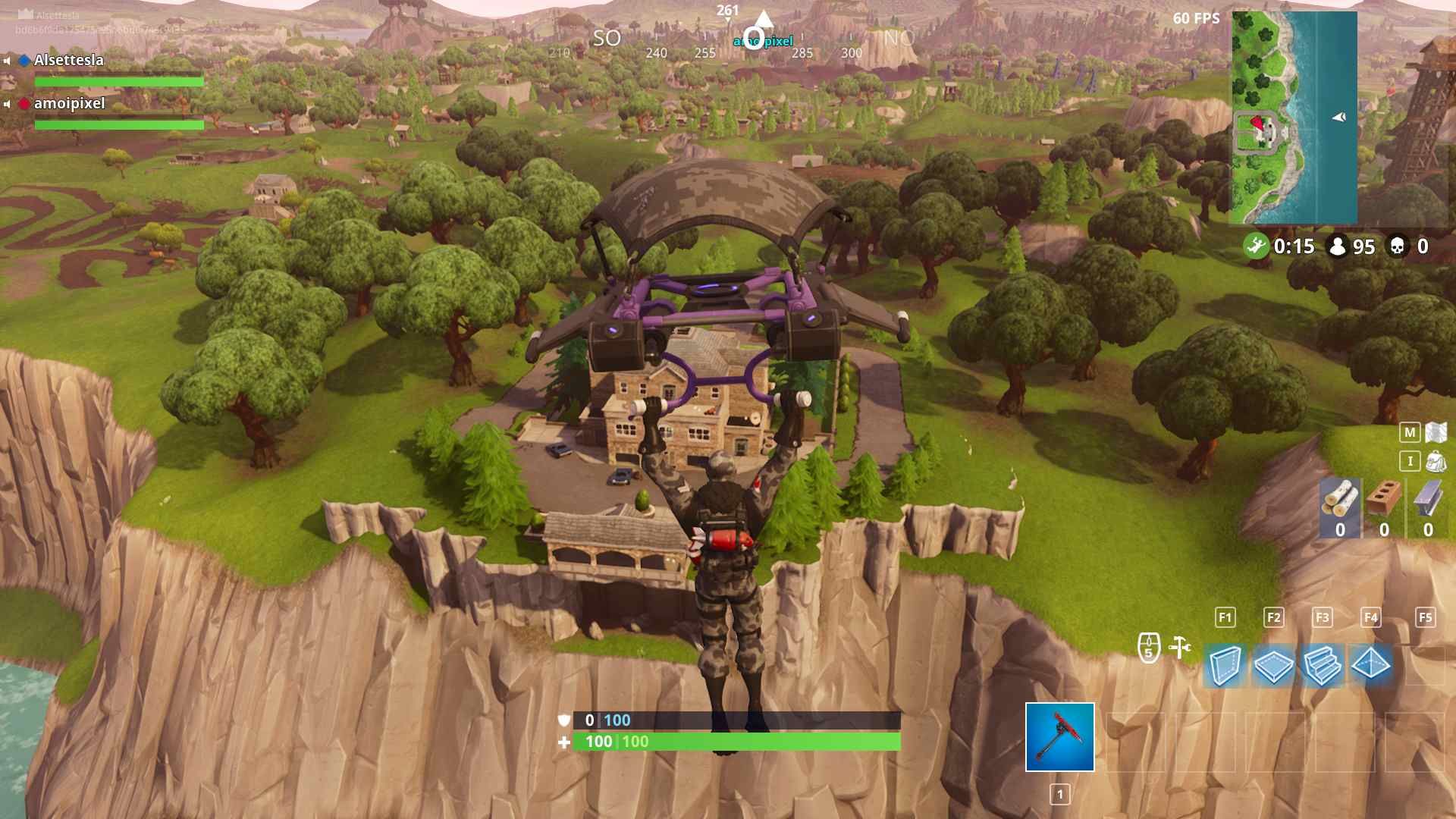 Prendere possesso dell’isola comunque è estremamente difficile: è possibile gettarcisi direttamente dal bus della battaglia o sfruttare il tornado per salire. Passando dal terreno sottostante l’isola è possibile anche rimbalzare contro il nostro simpaticissimo amico kevin per potersi far traslare a velocità iper-soniche verso l’altro, con tanto di deltaplano nuovamente attivo per poter manovrare meglio il proprio atterraggio.