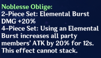 - 4x Noblesse Oblige, per potenziare i danni della ultimate e aumentare i danni dei personaggi DPS.