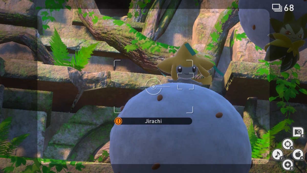 Jirachi comparirà anche più avanti nel percorso, mettendosi in pose più a favore di camera. Una volta entrati nella caverna all’interno delle rovine, quella con le statue dei Pokémon Lumina, potete trovare Jirachi che dorme sulla statua di Steelix. Potete svegliare la creatura lanciandogli una Sfera Lumina, così da poterla vedere svolazzare in giro per altre foto più pirotecniche.