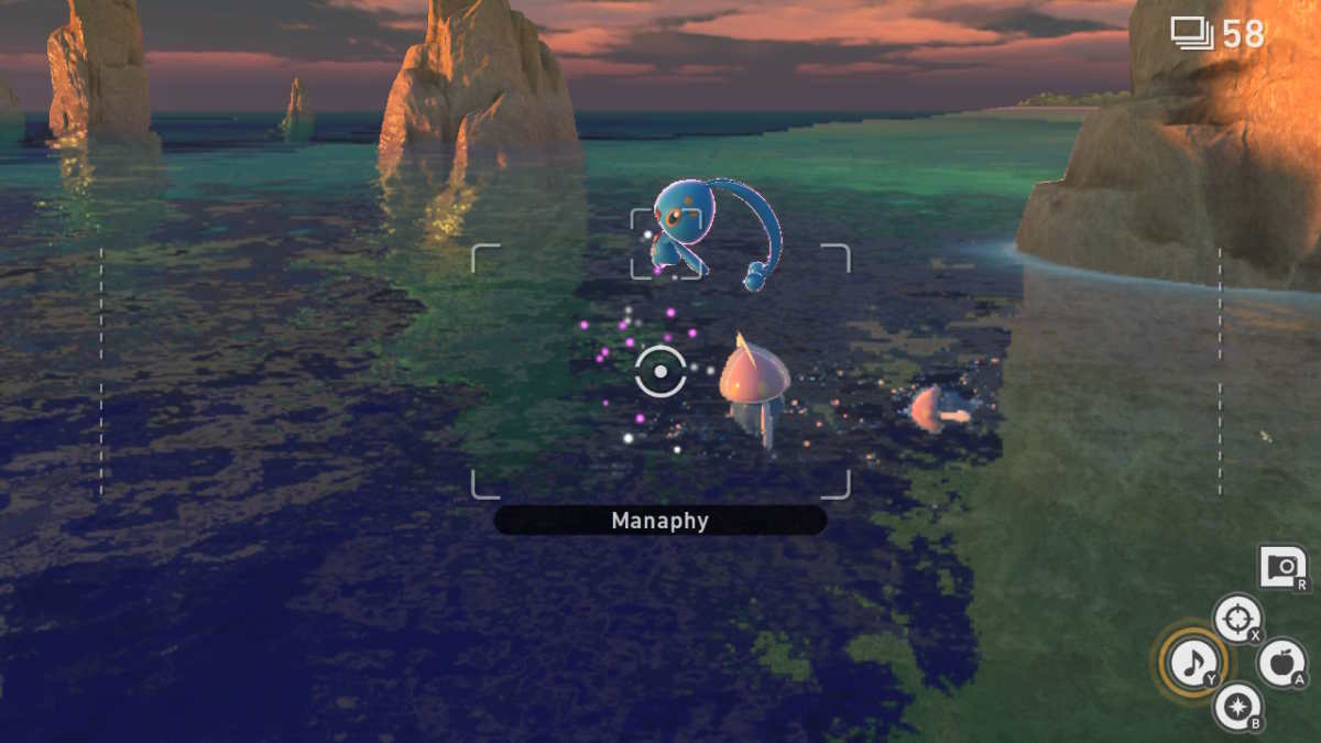 Manaphy è probabilmente una creatura misteriosa che avete già avuto modo di immortalare se avete visitato la Barriera Corallina di Opuleo al tramonto, accessibile solo dopo aver raggiunto i credits di gioco. Il Pokémon si può trovare con due metodi diversi, ognuno accessibile solo una volta per partita all’interno dello stesso percorso.