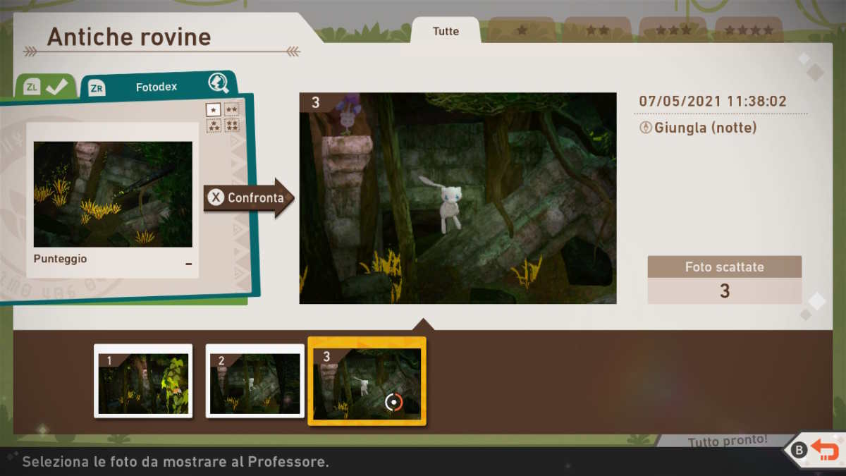 Se avete interrotto Mew tre volte dalla sua stasi nella sfera luminosa, avrete l’occasione di incontrarlo quando sorvolerete le Rovine Antiche sotto l’albero dei Toucannon. Proprio qui, provate a suonare il faluto. Mew comparirà di nuovo proprio in corrispondenza delle rovine, per un breve periodo di tempo, prima di riapparire proprio di fronte a voi, bloccandovi il passaggio prima dell’arrivo al lago. Qui Mew sarà più disponibile a farsi fotografare, volandovi attorno incuriosito. Ma soprattutto è dopo questo evento che sarà possibile trovare Mew anche di giorno.