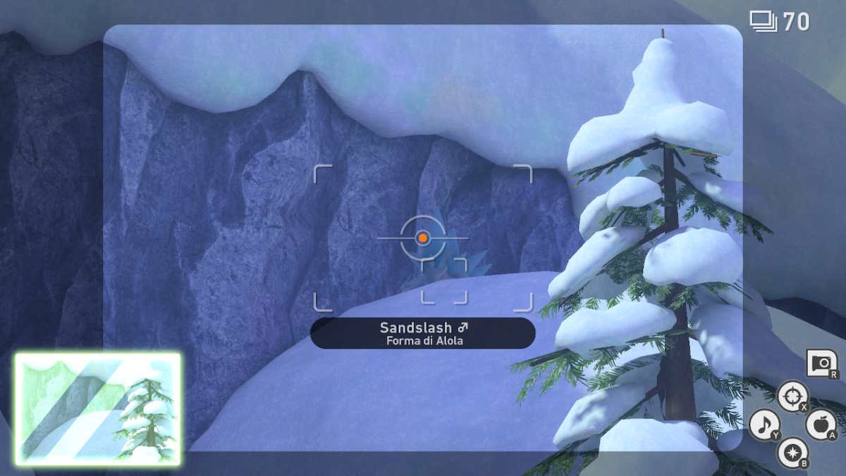 Restate concentrati e volgete lo sguardo alla prossima altura nella stessa area sulla sinistra, poco dietro quella in cui è scomparso Sandlash. Il Pokémon ricomparirà su questa seconda collinetta innevata per un’altra breve frazione di tempo e anche qui, scattategli una foto assicurandovi che se ne accorga e si spaventi.