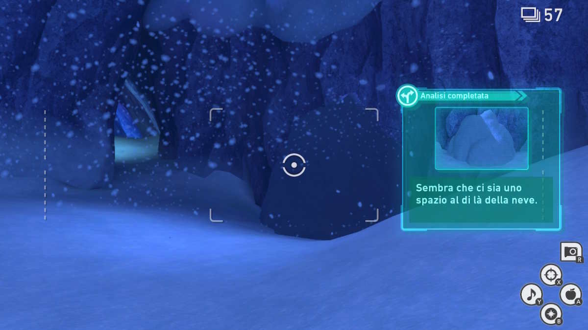 Scattate una foto ad Abomasnow e immortalate anche Froslass che comparirà poco più in là appena arriverà la bufera. Seguite Froslass scappare in un cunicolo ostruito da neve fresca e usate il radar per scoprire e sbloccare un nuovo passaggio segreto sulla destra che vi porterà in una caverna sotterranea glaciale. Attraversate l’area per spuntare poi nell’oceano ghiacciato.