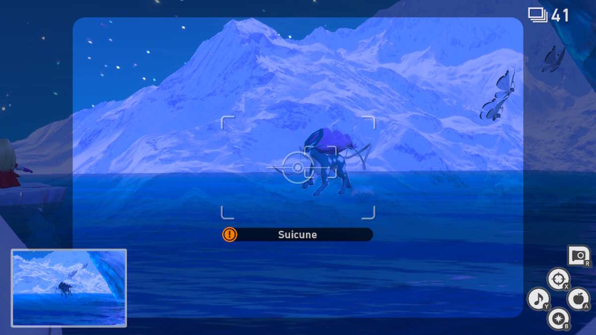 Qui sulla vostra destra, in lontananza, potete notare un Jynx a bordo di un Avalugg. Riempite i due Pokémon di Sfere Lumina per farli brillare e il luccichio attirerà finalmente un Suicune che corre a pelo d’acqua. Sarà possibile scattargli foto solo per pochi istanti, ma magari se usate qualche strumento riuscirete ad avere anche pose più rare.