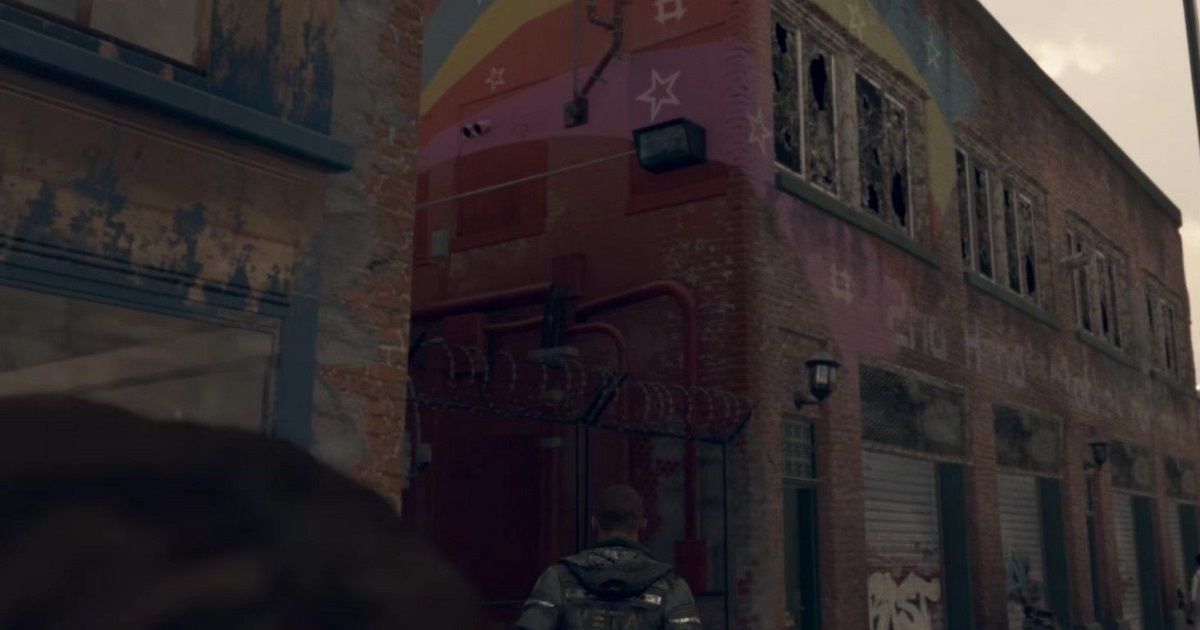 Vai più in fondo alla strada, segui il marciapiede di sinistra. Alla fine del marciapiede c’è una recinzione sul lato sinistro. Se guardi attraverso la rete puoi vedere il graffito. Le due icone a forma di X possono essere scansionate stando di fronte alla recinzione. Tuttavia, il terzo è oscurato da una tavola di legno appoggiata al muro. Per rimuoverla devi strisciare sotto la recinzione (premi L1 vicino ad essa). Ricorda che per ottenere il prompt dei pulsanti che ti permetterà di rimuovere la tavola, devi prima scansionare le due icone visibili sul graffito. Dopo aver superato il recinto, rimuovi la tavola di legno e mettiti di fronte al muro. Adesso l’ultimo indizio può essere analizzato.