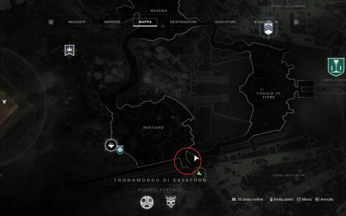Per la prossima runa dovete raggiungere un’altra zona esterna del Tronomondo, ossia la Tenda Seducente, raggiungibile dal punto cerchiato nella mappa qua sopra.