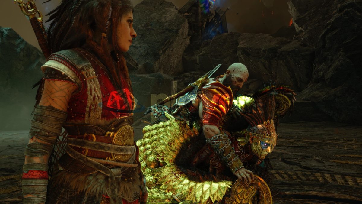 Dopo i titoli di coda, dovrete recarvi a Muspelheim e, dall’arena principale (quella con la Cassa Nornana al centro, per intenderci), imboccare un passaggio sulla destra che, saltando da un appiglio all’altro, vi condurrà in un’arena con un libro in bella vista. Non appena vi avvicinerete al manoscritto per raccoglierlo, Gná si presenterà al vostro cospetto, dando inizio allo scontro.