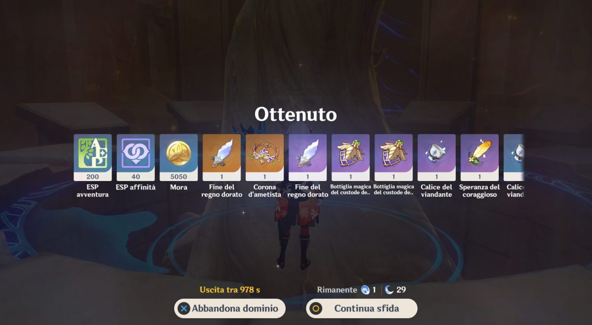 Altra attività giornaliera da fare in Genshin Impact sono i Domini (Domains). Questi dungeon sono presenti in ogni regione di Teyvat e ognuno di essi permetterà di guadagnare diverse tipologie di ricompense, principalmente Manufatti e materiali di Ascensione di Armi e Talenti.