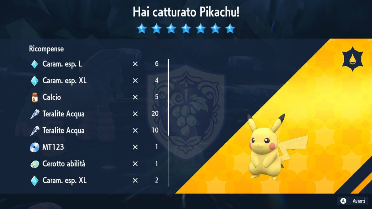 - Un Pikachu di livello 100 con IV perfette, Natura Quieta e l’abilità nascosta Parafulmine (ricordate che si può catturare Pikachu una sola volta, ma si può ripetere il raid per ottenere le altre ricompense più volte).
