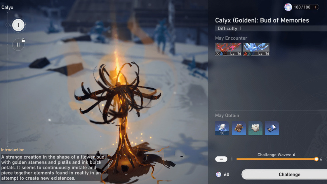 I materiali richiesti per sbloccarli si ottengono dai Crimson Calyx – che potremmo paragonare ai Bozzoli della Rivelazione (Ley-Lines) o ad alcuni Domini di Genshin Impact, dunque a sfide a tempo da ripetere più e più volte per le loro succose ricompense che si alternano ogni tot giorni. Un tentativo costa 10 Trailblaze Power, “l’energia” di gioco, paragonabile alle Resine dell’altro titolo che abbiamo già nominato fin troppe volte, ma anche qui è possibile velocizzare il farming facendo valere un tentativo fino a un massimo di sei volte, al prezzo ovviamente di aumentare il consumo di energia (6 tentativi in una volta sola = 60 Trailblaze Power richiesti).