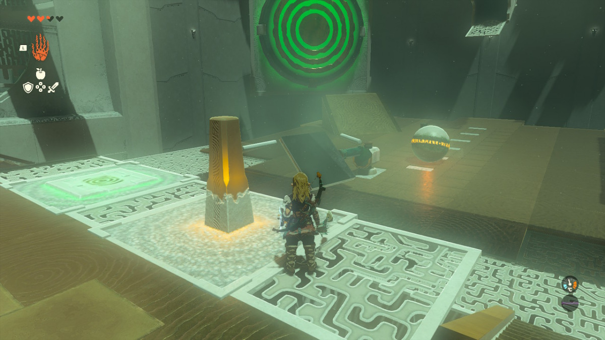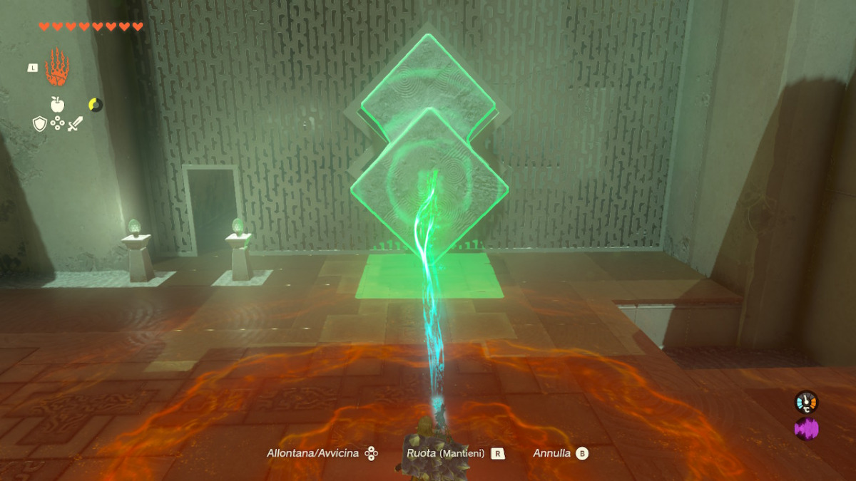 Nell’Antico parco di Hyrule, alla destra del castello. Nella prima zona, saltate sulla piattaforma ed usate Reverto su di essa per risalire. Nella seconda zona raccogliete la fiaccola, saltate sulla zattera e una volta arrivati ai bracieri accendete la fiaccola e poi usate Reverto sulla zattera per tornare indietro e accendere i 2 bracieri di fronte alla porta. Nella terza zona sollevate la sfera e mettetela nell’incavo più in alto. Poi contate 5 secondi sollevatela di nuovo e mettetela nell’incavo più in basso. Ora attraversate la prima porta e poi usate Reverto sulla sfera, si sposterà indietro arrivando nel primo incavo e potrete raggiungere la fine.