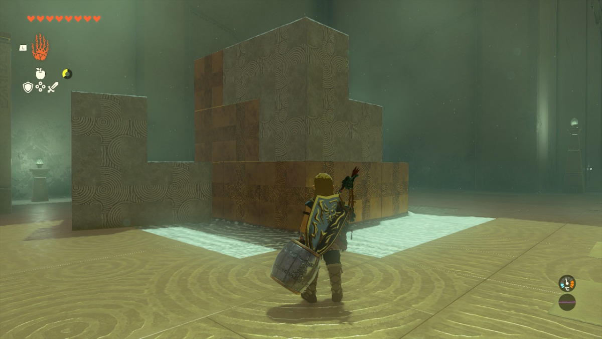 Si tratta di una sacrario totalmente buio dove dovrete cercare uno scrigno von una piccola chiave per aprire la porta all’entrata. Per farvi luce potrete usare sia i fiori luminosi sia la torcia zonau all’entrata da portarvi dietro con l’Ultramano. Lo scrigno con la piccola chiave si trova andando a destra, dritti, destra, destra, al di sotto di una lastra nel pavimento.