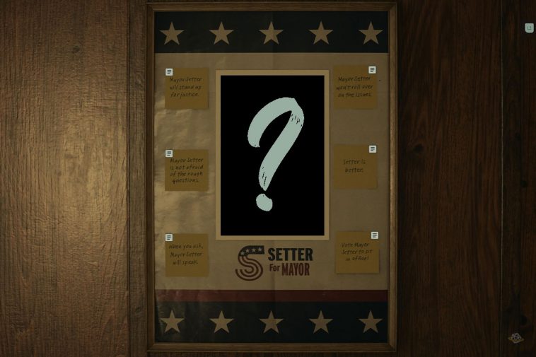 Una delle attività secondarie più assurde di Alan Wake 2 è la ricerca del sindaco Setter. Si tratta di un’attività disponibile per Saga che dovrà prima trovare tutti gli slogan del sindaco Setter e poi completare il capitolo “Return 5” del gioco per poter finalmente incontrare il sindaco. Di seguito vi mostreremo quindi dove trovare i Cartelloni, dove trovare il sindaco Setter e cosa fare per ottenere il trofeo Le cose belle della vita e il ciondolo segreto per Saga.