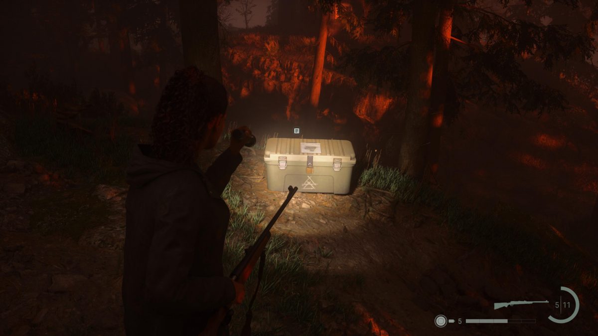 Dopo aver ritrovato Alan sulla riva del lago, proseguite verso destra passando sotto i tronchi per trovare la cassa. Per aprirla replicate il codice mostrato sul tastierino numerico.