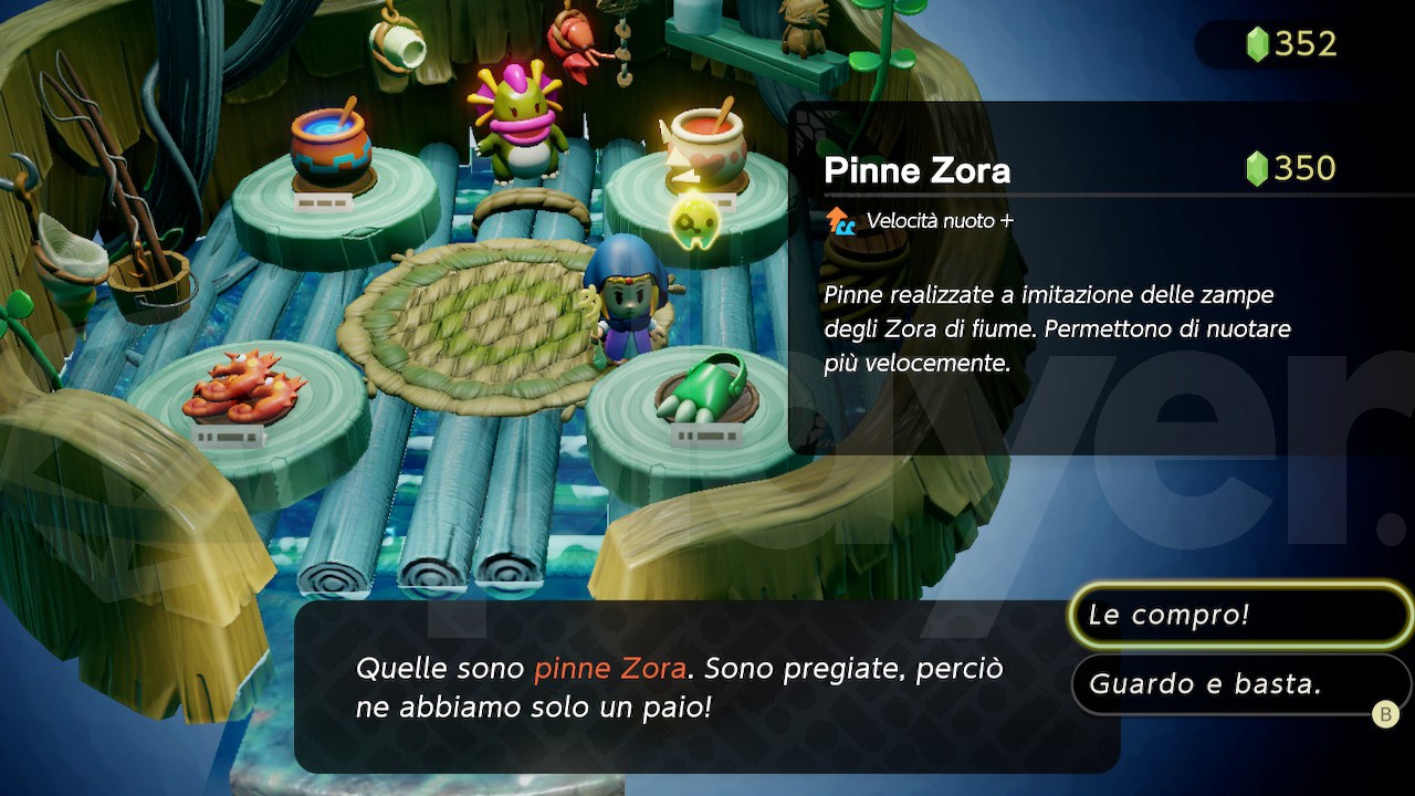 Ora andate nel villaggio degli Zora di mare e parlate con lo Zora dell’emporio. Dovrete portargli un frullato sfortunato. Vi basterà mischiare insieme un qualsiasi ingrediente con una parte di mostro. Oppure due unità di Salgemma.