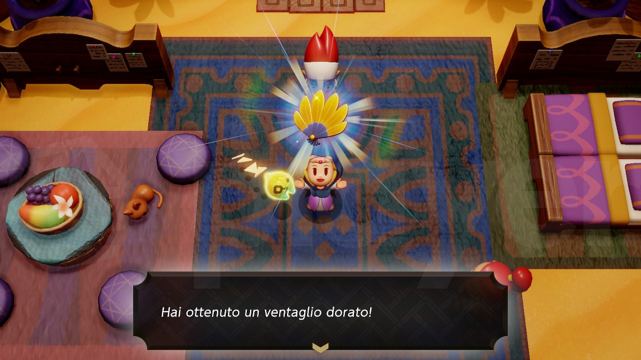 La seconda missione invece è legata alla ricercatrice dentro la tenda del mango scorzadura. Parlate con la donna e pagate 10 rupie per partecipare al minigame. In pratica dovrete usare R per roteare e raccogliere tutti i mango scorzadura che compaiono nell’arena. Per la prima sfida ne servono 40 e otterrete 3 Frammenti di Potere. Per la seconda sfida (che si sblocca superata la prima) ne servono 50 e otterrete un Ventaglio Dorato. Se raccogliete tutti i manghi otterrete un ulteriore bonus in rupie.