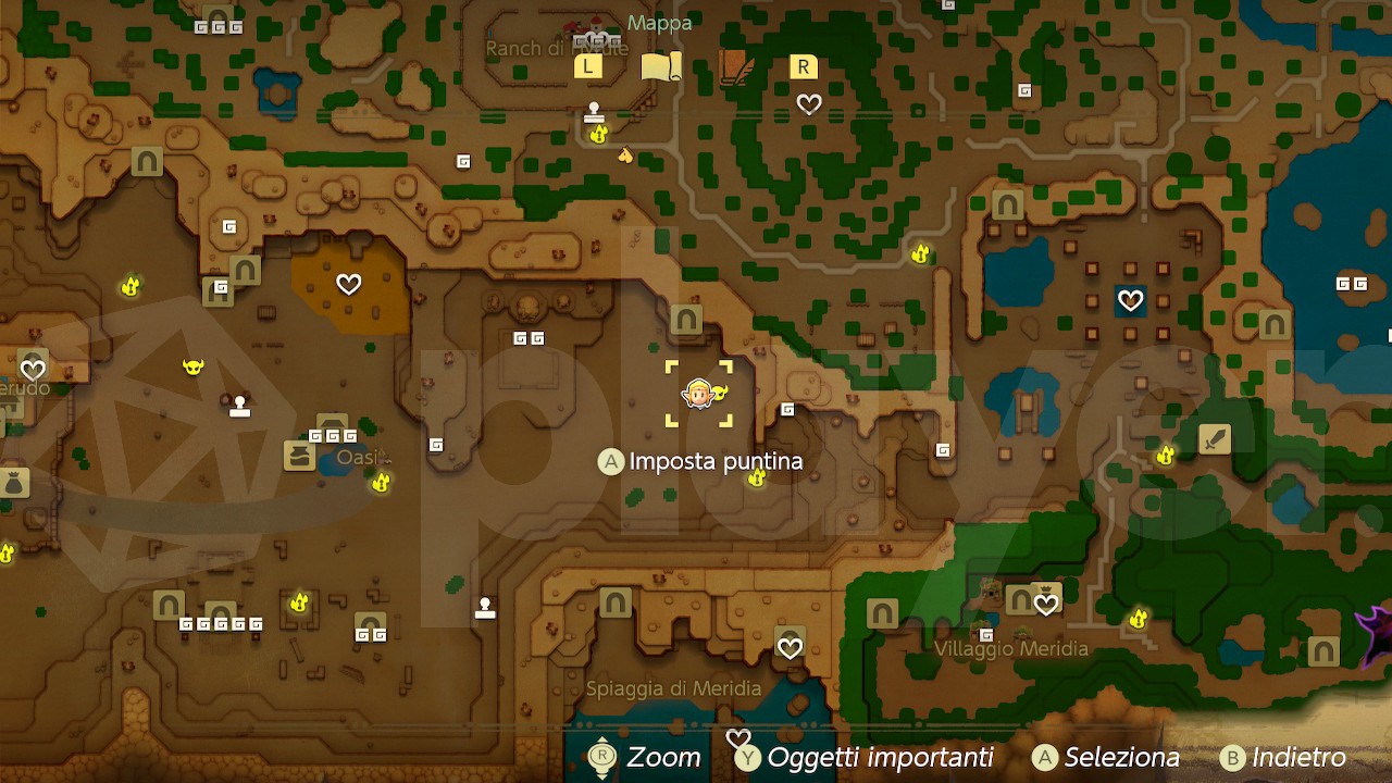 Usciti dal dungeon scoprirete di aver aggiustato il mondo e potrete conoscere Lueberry che vi indirizzerà verso il Deserto Gerudo. Prima di andare però parlategli nuovamente per sapere dei Frammenti di Potere e fate un salto al Villaggio di Meridia per mostrare il Bulbocottero all’abitante che ha una MISSIONE per voi. Una volta fatto otterrete un altro Frammento di Potere.