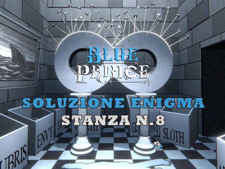 Avete finalmente raggiunto la Stanza 8 che è molto particolare anche nel design: presenta un enorme otto posizionato in orizzontale (come simbolo dell’infinito) e dei chiodi che lo trafiggono, inoltre vicino alle pareti sono presenti sia otto statue, ognuna raffigurante un animale, e otto contenitori, ognuno che rappresenta uno dei vizi capitali; ciò che bisogna fare è abbastanza intuitivo: associare ogni statua al suo contenitore.