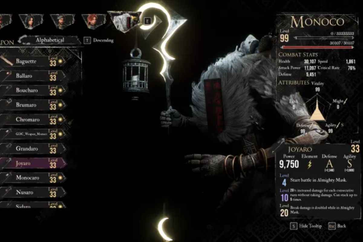 Il Gioiaro vi darà un grandissimo bonus, già al livello 4, permettendovi di iniziare ogni battaglia con la maschera dell’Onnipotenza, così da poter sfruttare qualunque strategia vogliate e adattandovi a ogni scontro in modo perfetto; al livello 10, avrete la possibilità di accumulare 20% di danni in più, per ogni turno in cui Monoco non subisce danno, fino a un massimo di 5 turni consecutivi; infine, al livello 20, quando la maschera dell’Onnipotenza è attiva, i danni da Strappo vengono raddoppiati.