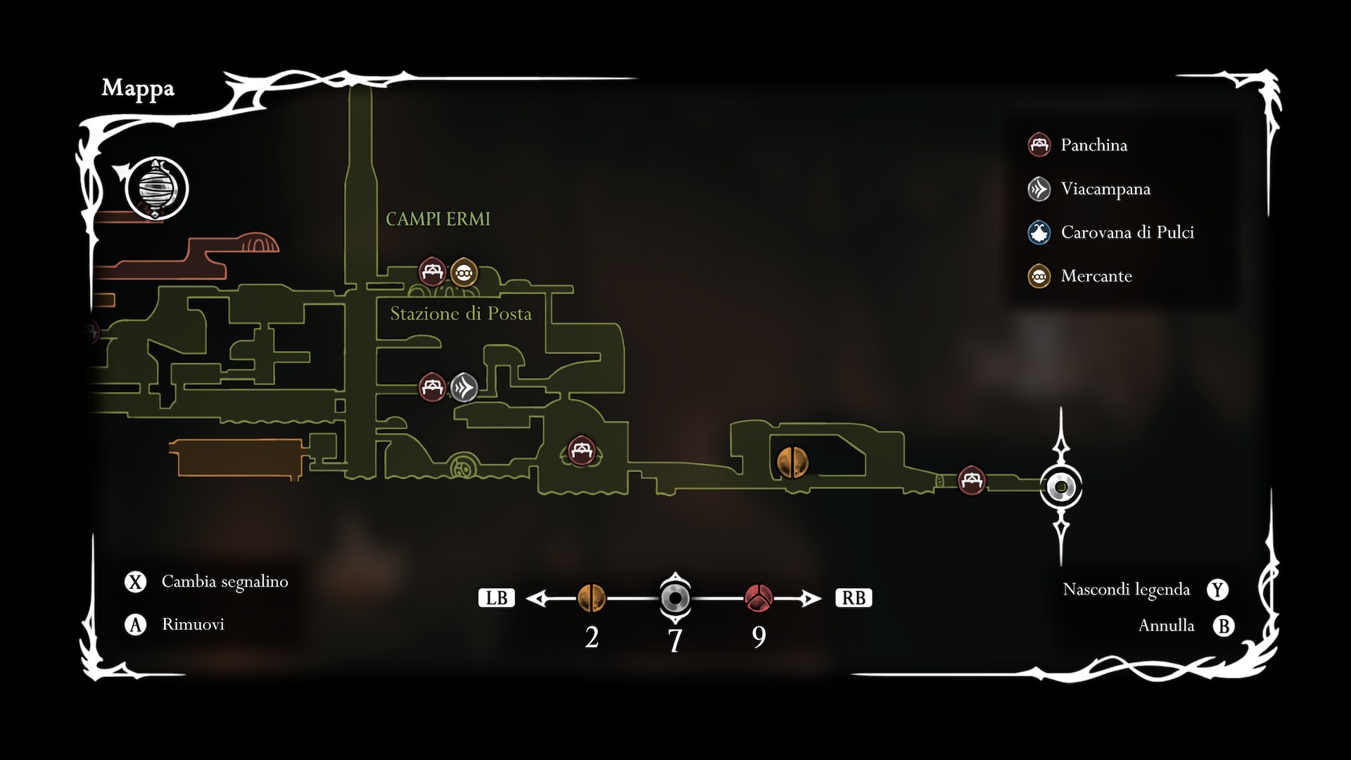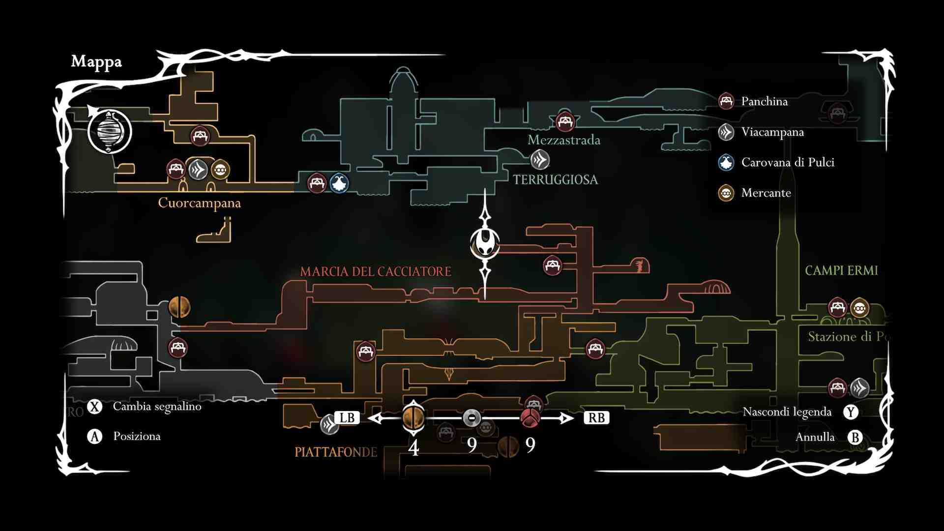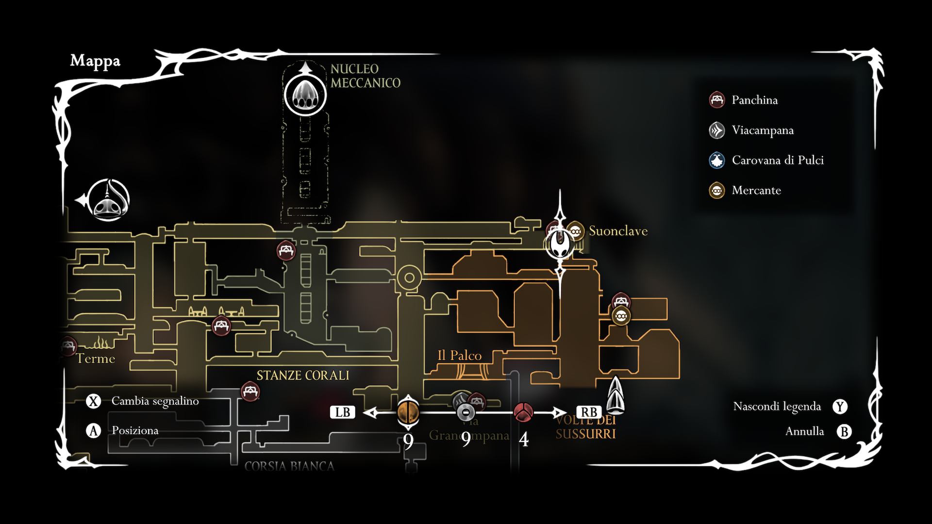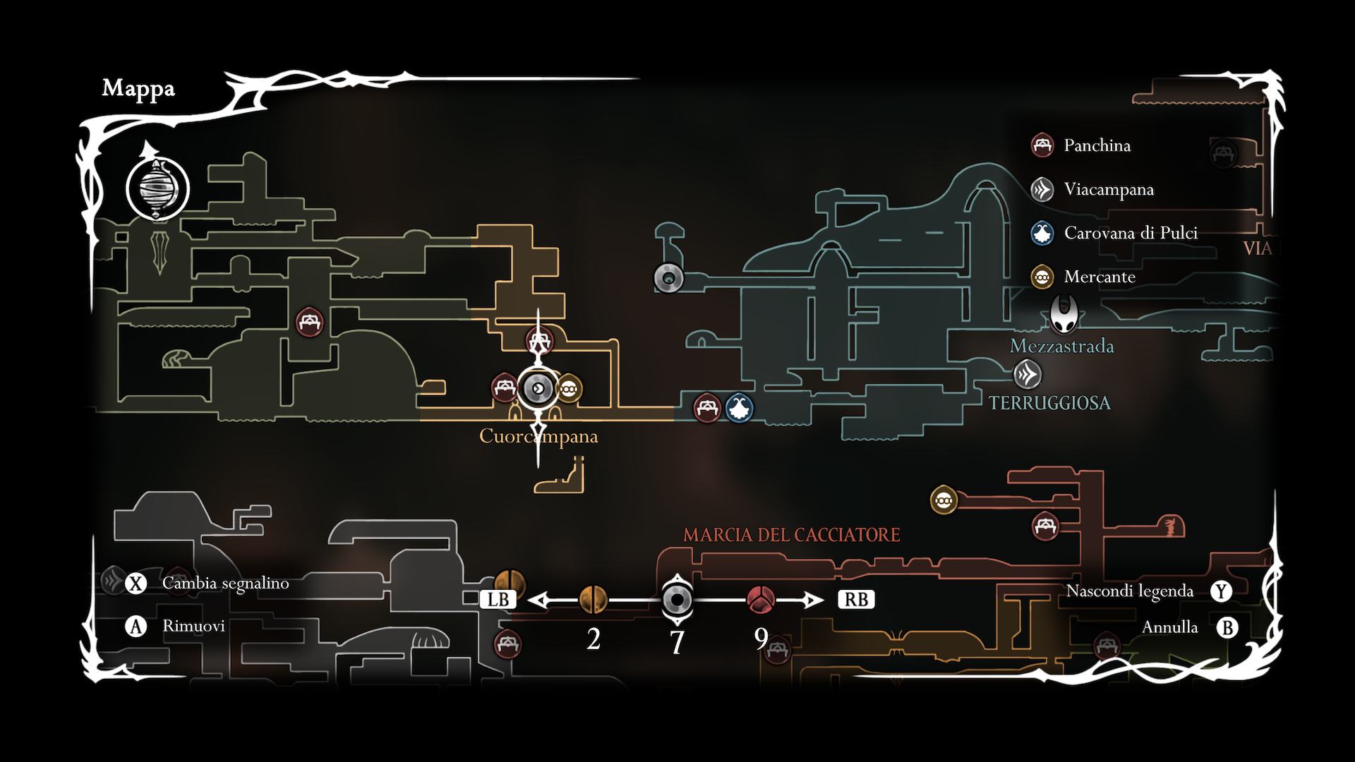 - COME OTTENERLO: Si acquista da Shakra nell’Antro durante il primo incontro con l’NPC o successivamente a Bossopiano. Leggi qui la nostra guida alle Mappe di Silksong.