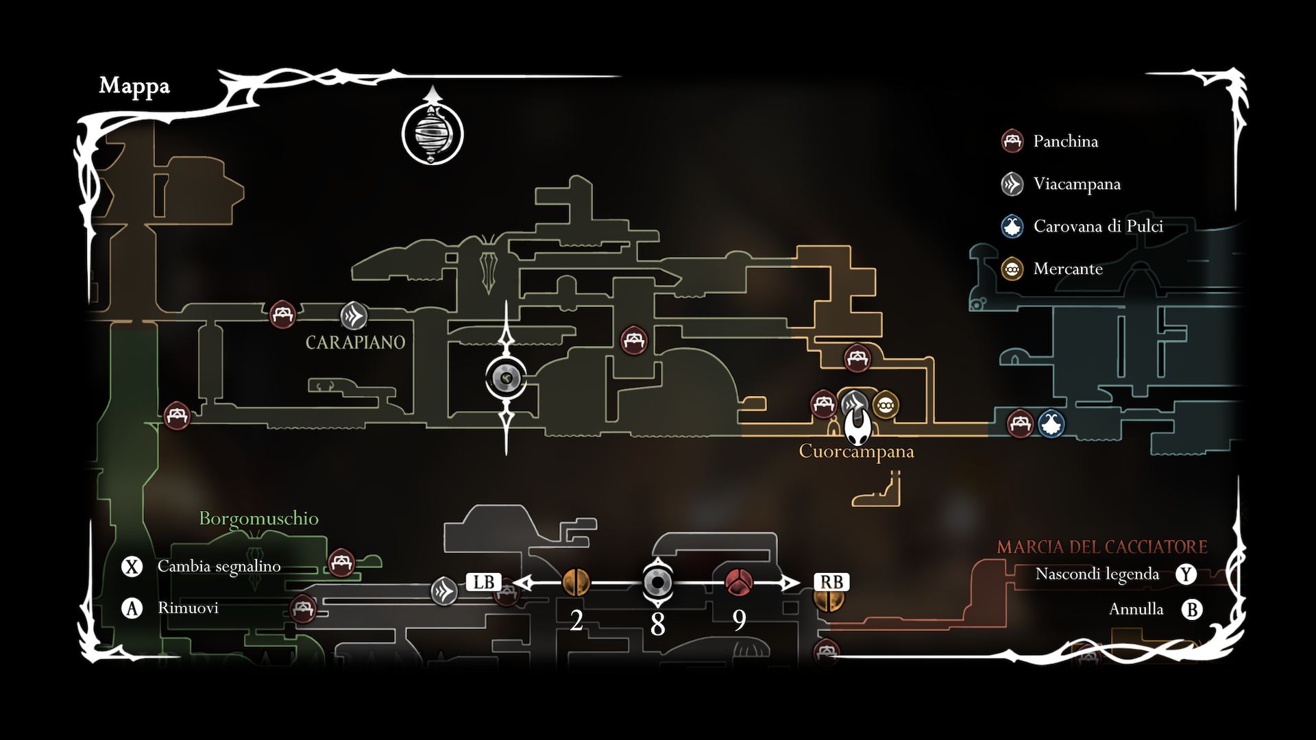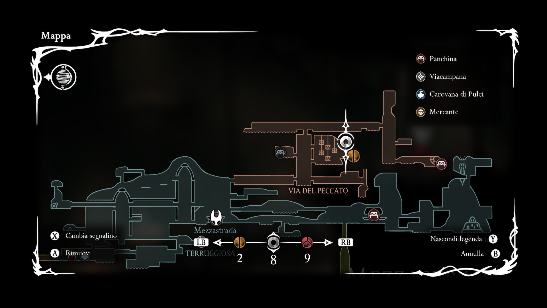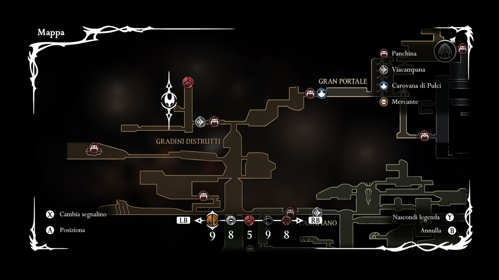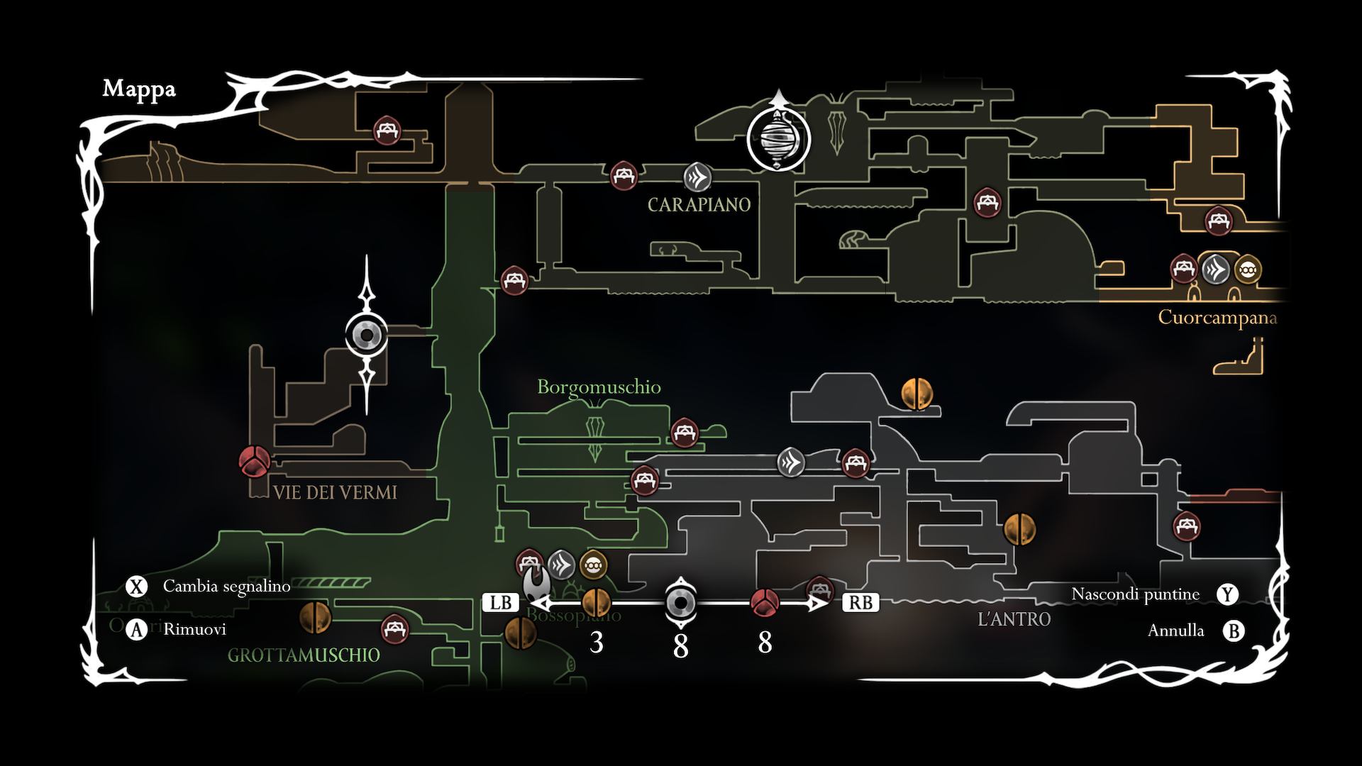 - COME OTTENERLO: Si acquista da Shakra nell’Antro durante il primo incontro con l’NPC o successivamente a Bossopiano. Leggi qui la nostra guida alle Mappe di Silksong.