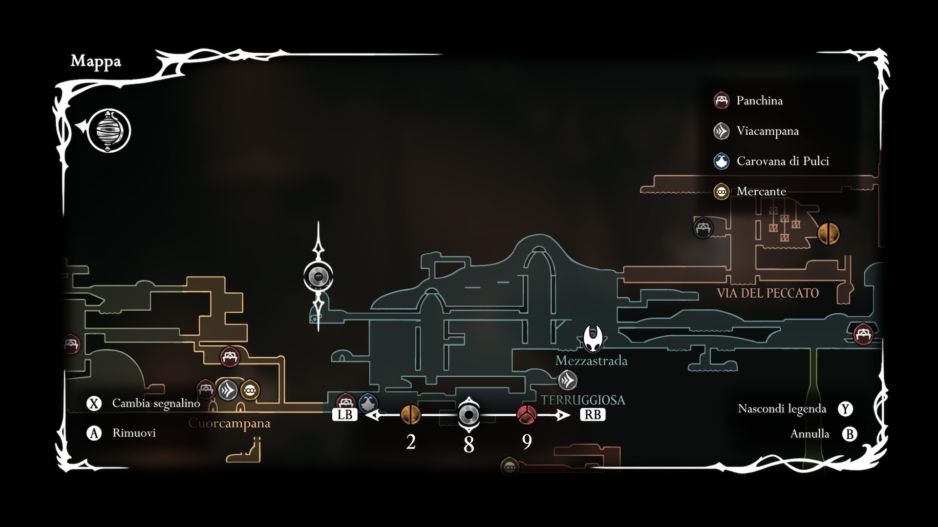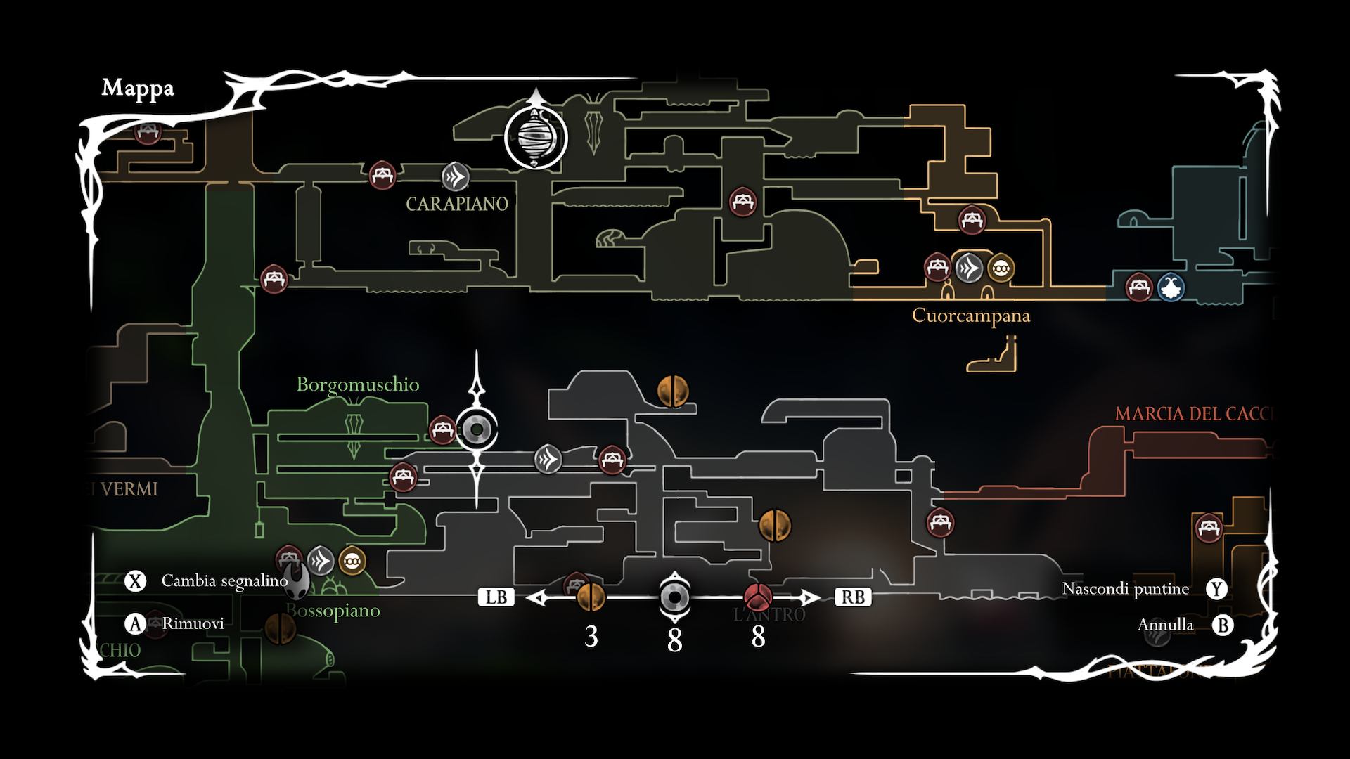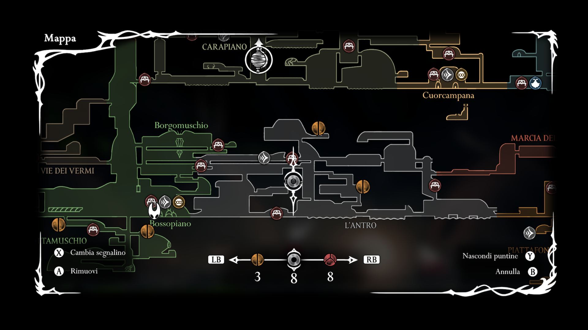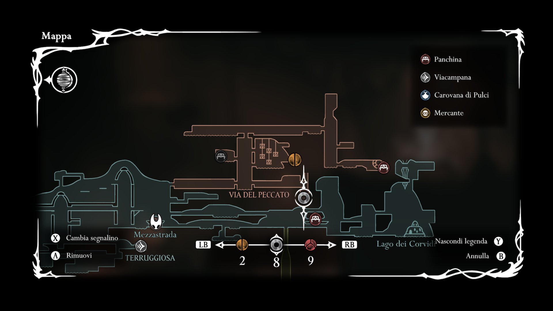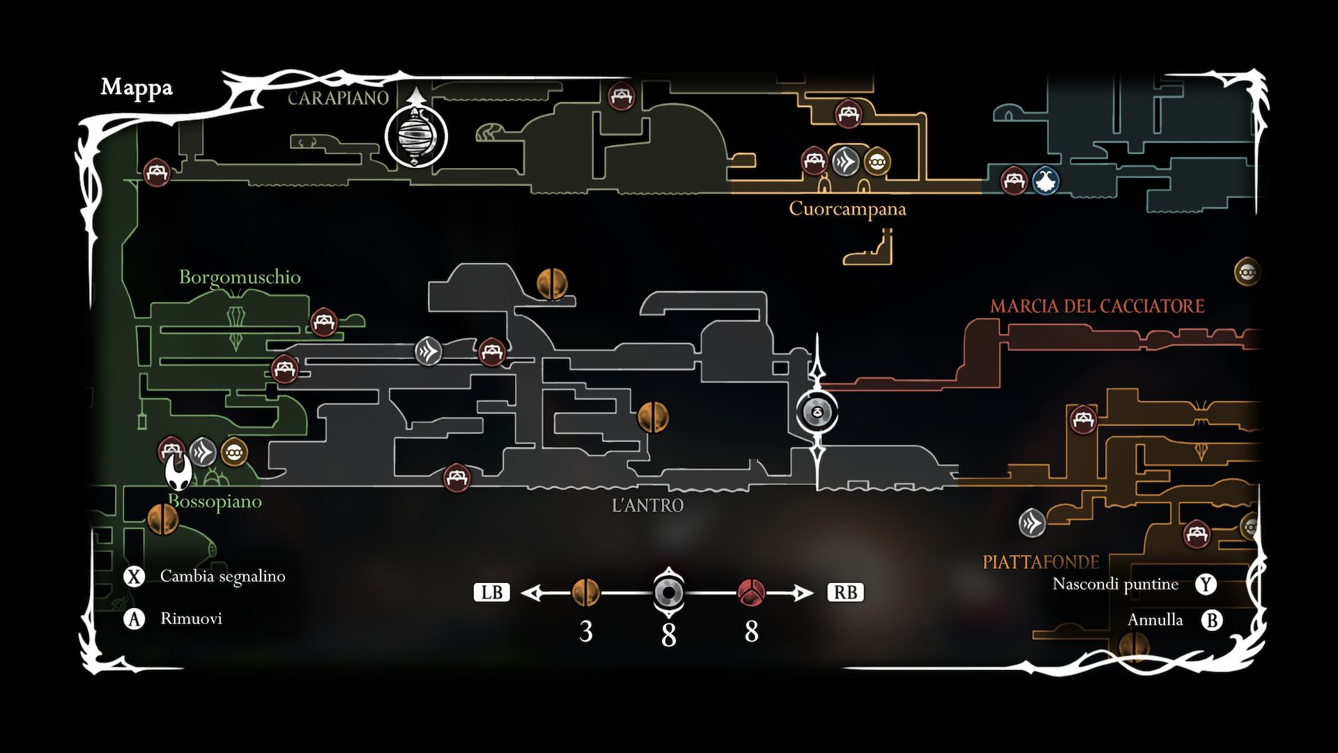 - COME OTTENERLO: Si acquista da Shakra nell’Antro durante il primo incontro con l’NPC o successivamente a Bossopiano. Leggi qui la nostra guida alle Mappe di Silksong.