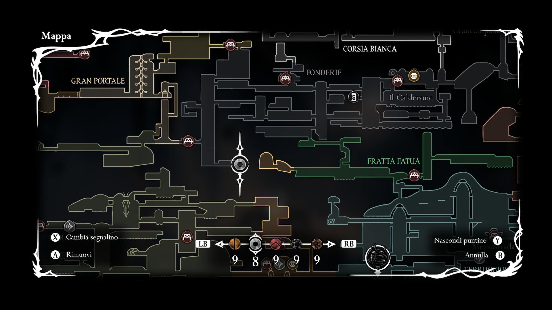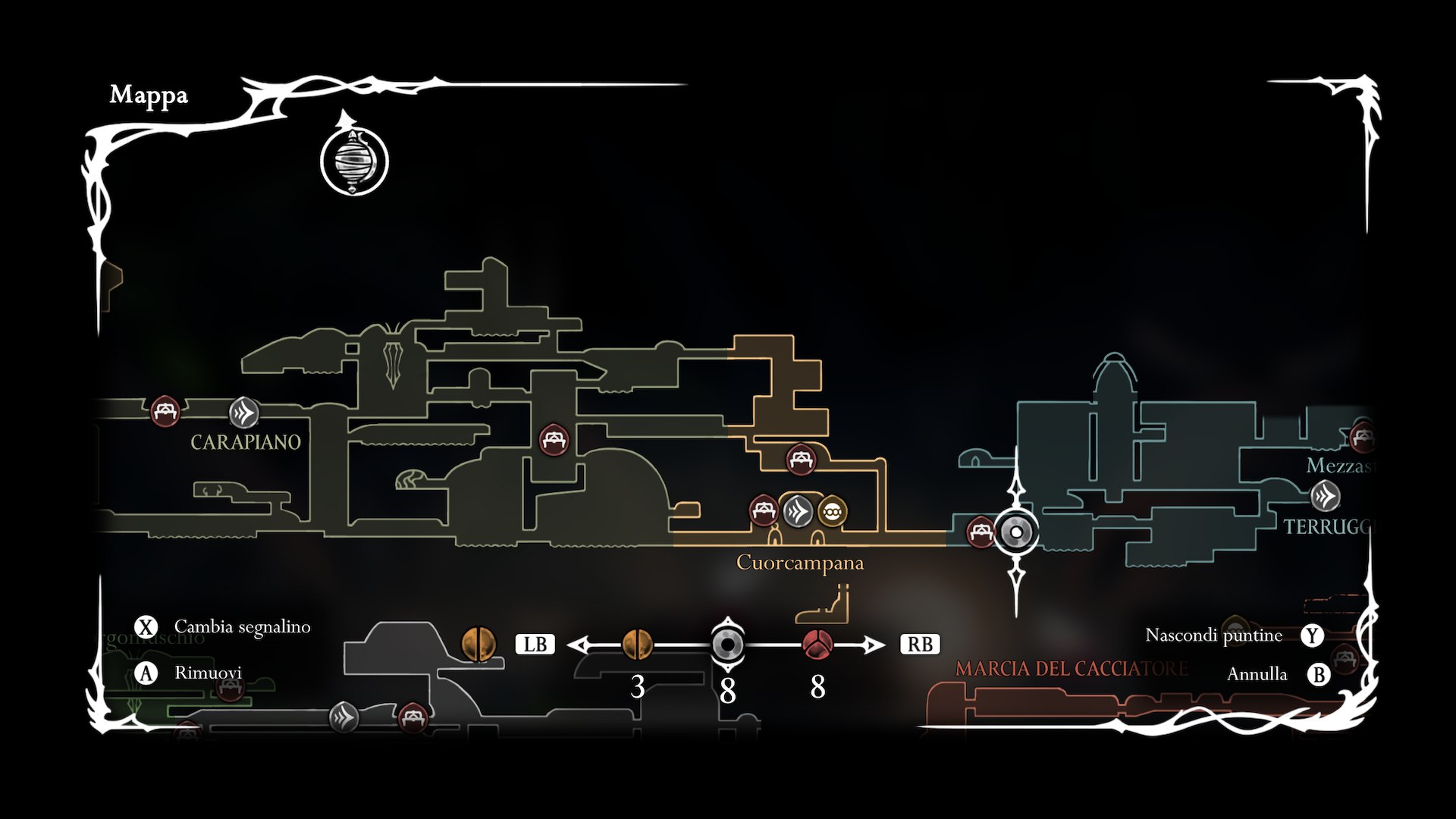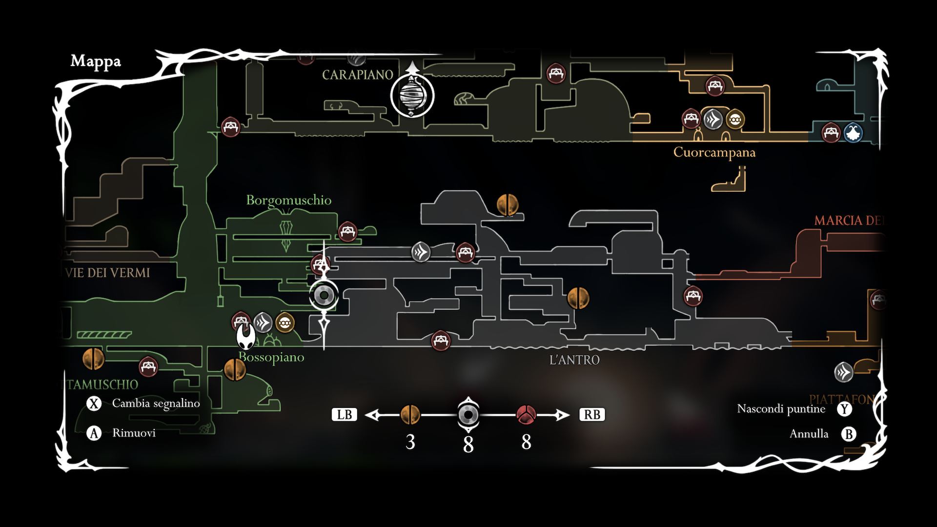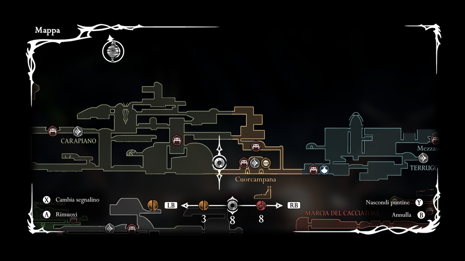 - COME OTTENERLO: Si acquista da Shakra nell’Antro durante il primo incontro con l’NPC o successivamente a Bossopiano. Leggi qui la nostra guida alle Mappe di Silksong.