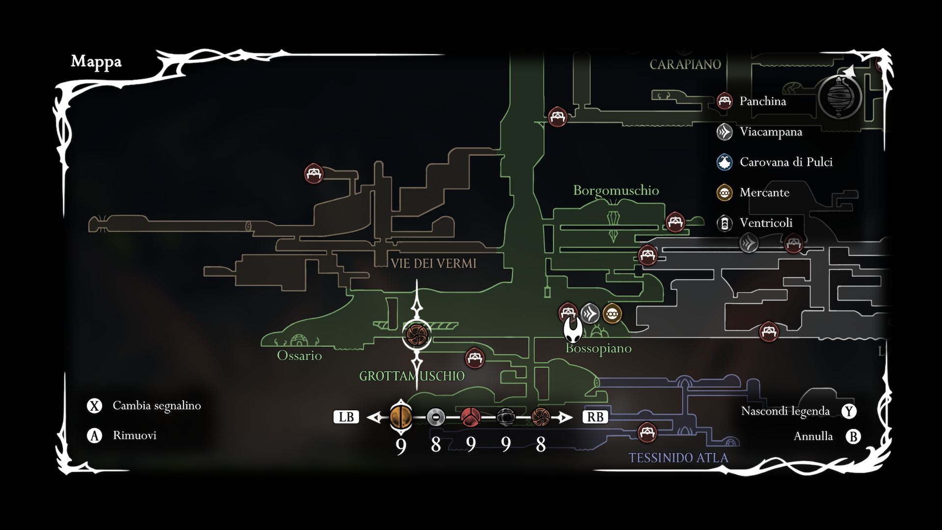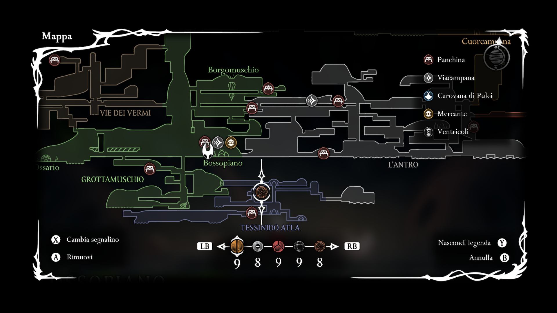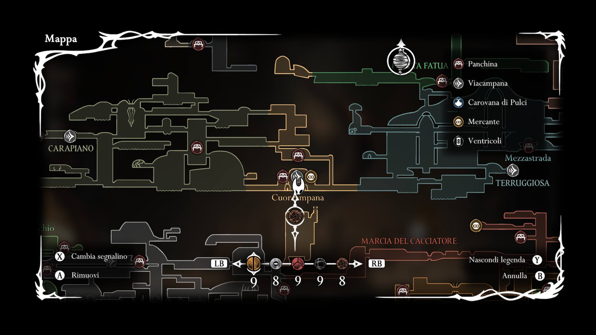 Da questo momento in poi il percorso sarà direttamente guidato dal gioco con segnalini in mappa e dunque, anche per non rovinarvi troppo la sorpresa, vi lasceremo scoprire cosa vi attende nel cuore dell’Atto 3 perché è davvero una gradita sorpresa per tutti coloro che hanno giocato a fondo il primo Hollow Knight.