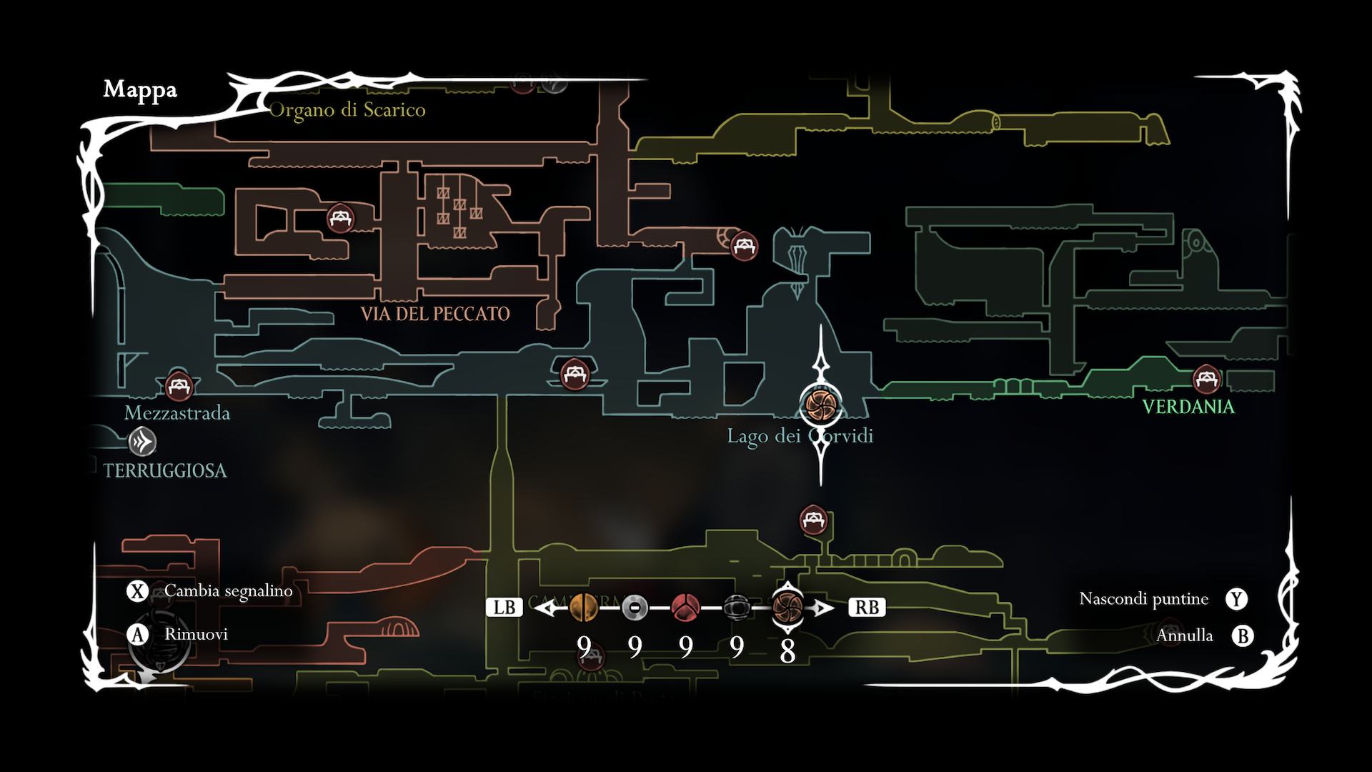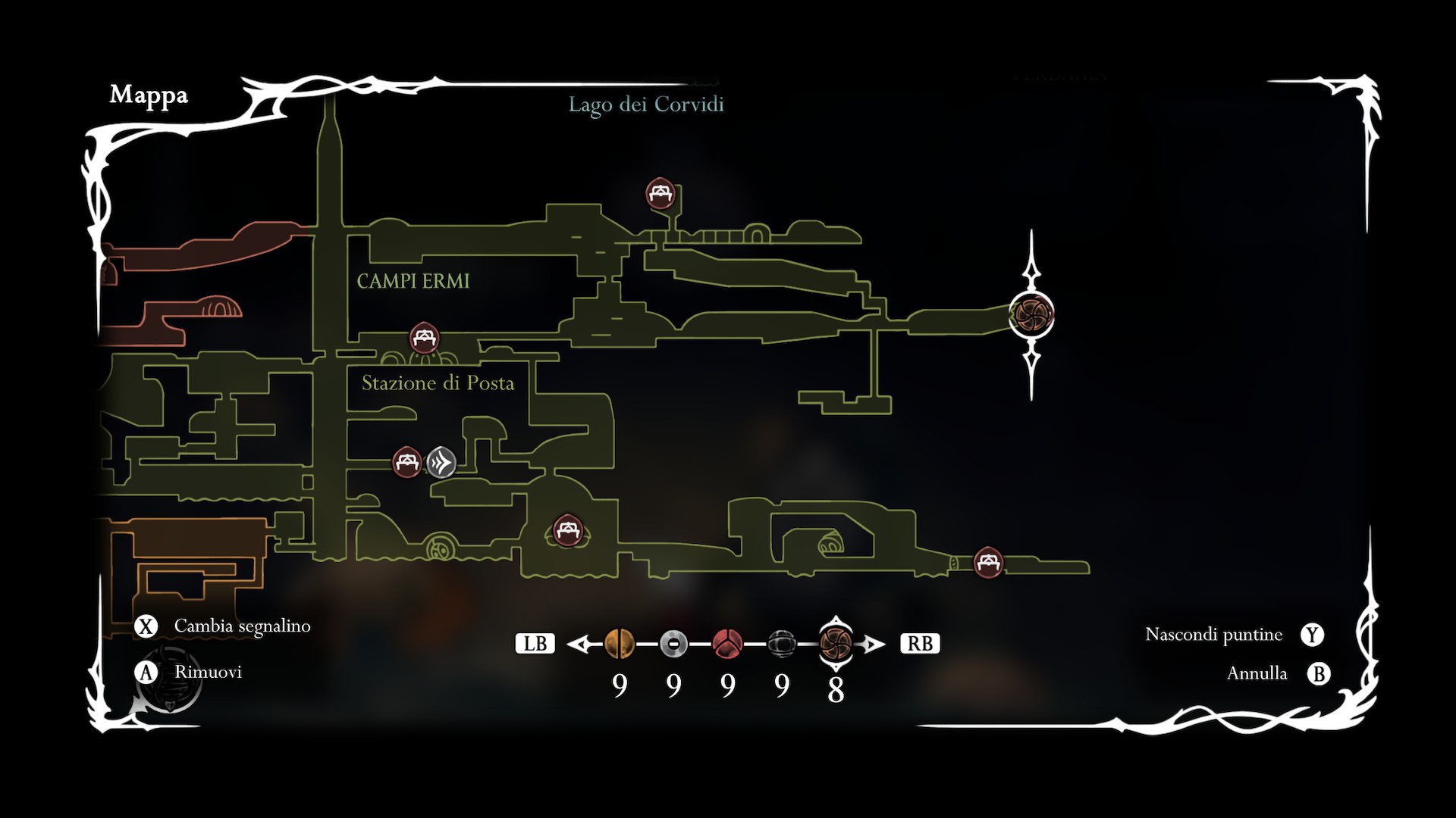 Il Cimelio dei Corvidi si ottiene una volta battuto il Padre dei Corvidi all’interno di una zona segreta del Lago dei Corvidi: per accedere a questa zona bisogna essere invitati dalla Corte dei Corvidi che ci invierà una sorta di messaggio legato a uno spillo; questo strano oggetto cadrà dal cielo improvvisamente a un certo punto dell’Atto 3 mentre siamo seduti su una panchina e ci darà la possibilità di accedere alla porta all’interno del Lago dei Corvidi.