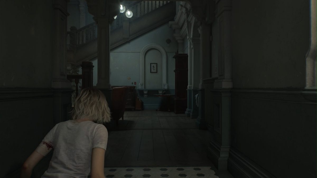 Superata la cucina raccogliete la FOTO DI GRACE a cui è attaccata la VECCHIA CHIAVE dalla colonna del bancone del Lounge Bar a sinistra. Potete usare la chiave per aprire subito la porta a sinistra (nei bagni a destra invece non c’è nulla da prendere).