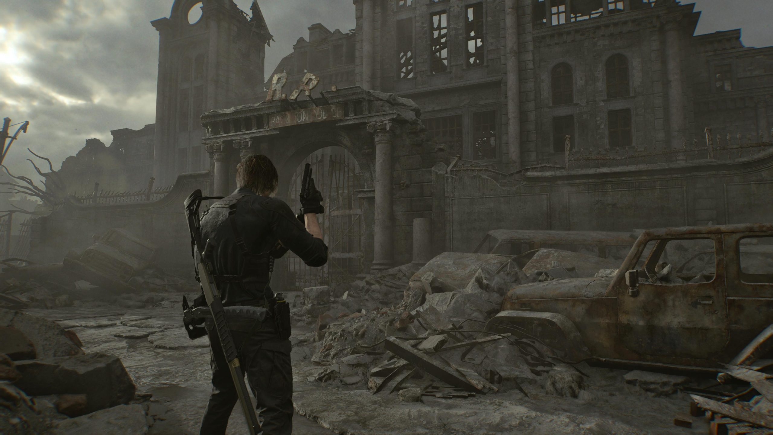 Raccogliete il DOCUMENTO – Articolo sull’incidente di Raccoon City di fronte alla macchina appena arrivati. Mentre dal parcheggio a sinistra, dentro una cassa, potrete prendere 2 MUNIZIONI per la Carabina.