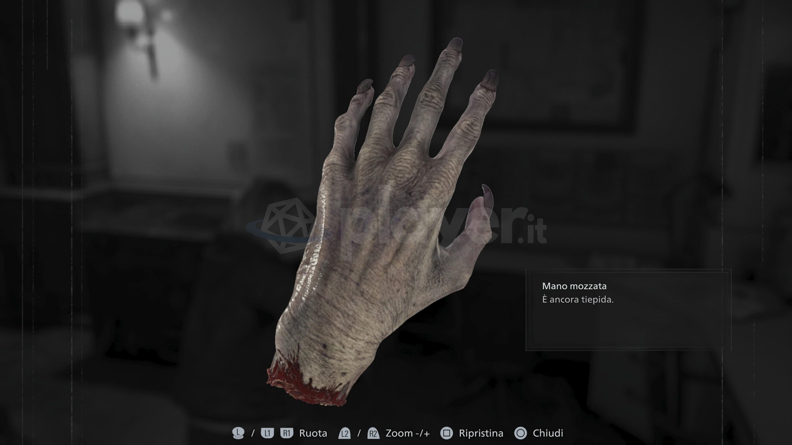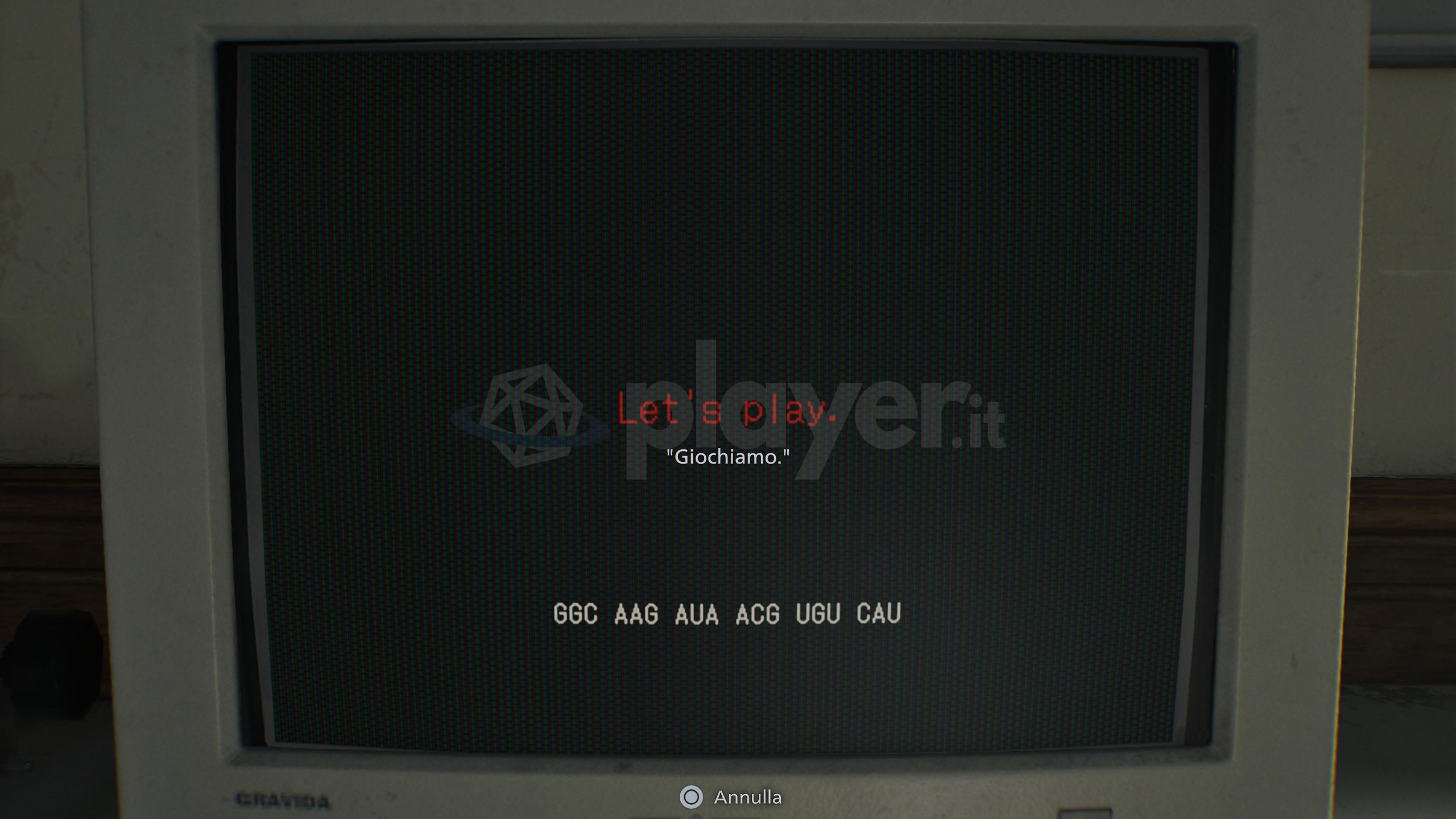 Dopo essere scappati dai Sotterranei di Rhodes Hill con Grace, a terra, davanti alle porte dell’ascensore insanguinato, potrete raccogliere la MANO MOZZATA del mostro. Se la portate presso uno dei due dispositivi disponibili per l’analisi del DNA presenti a Rhodes Hill potrete affrontare il classico minigioco (che avete già affrontato per sbloccare nuove ricette di creazione) solo che poi vi troverete di fronte ad un particolare messaggio.