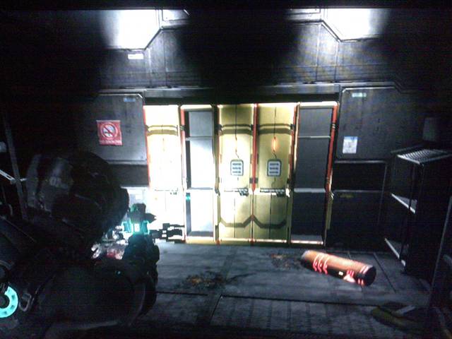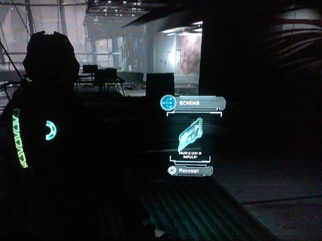 Appena fuggiti dalla stanza con il Necromorfo che si rigenera ( Bastardo! ) seguite il corridoio e svoltate a destra nel vicolo cieco per trovare un Nodo Energetico sul muro.