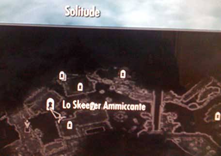 Vi aspetta un viaggio davvero lungo e, per ovvie ragioni, mi è stato impossibile elencarvi tutto ciò che incontrerete. Vi assicuro però che ne vale la pena! Arrivati a Solitude, appena entrati in città assisterete ad un esecuzione! Depredando l’uomo appena morto troverete l’ AMULETO DI TALOS (intervallo di tempo tra un urlo e un altro ridotto del 25% ). Entrate nella locanda a sinistra, LO SKEEVER AMMICCANTE, dove troverete, seduto a bere, Gulum-ei e parlate con lui.