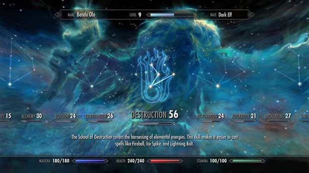 Un ottimo metodo per aumentare velocemente distruzione è quello di comprare un cavallo e lanciargli ripetutamente uno dei tre incantesimi da principiante, appena finirete la magicka o appena il cavallo rischierà di morire basterà attendere 1 ora e potrete ricominciare. Se il vostro cavallo, poi, è quello della confraternita -Shadowmere – meglio ancora! Un altro metodo è quello di utilizzare il trucchetto, indicato sopra, per aumetare l’evocazione con una variante: dopo aver fatto resuscitare i nemici uccideteli con incantesimi distruzione!