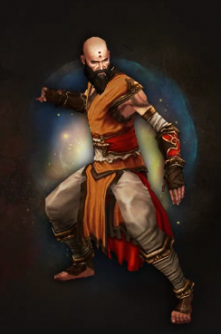 “I monaci sono guerrieri sacri in grado di incanalare la potenza divina tramite la mera forza di volontà. Onde rigenerative, mantra protettivi e attacchi alimentati dalla potenza celeste rientrano nella loro sfera di specializzazione.I monaci più abili sferrano rapidi colpi a mani nude o con una serie di armi ben bilanciate. In combattimento, preferiscono la maneggevolezza alla potenza in sé e sfrecciano da un punto all’altro del campo di battaglia evitando di restare invischiati nello stesso scontro troppo a lungo. Gli attacchi dei monaci sono tendenzialmente da mischia. Sanno eliminare i singoli nemici con grande efficienza e arrecare danni su aree a corto raggio con ondate di potere elementale, emanate dai palmi delle mani o con calci rotanti.”