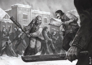 [Riccardo: in verità il combattimento in Brass Age è presente ed è estremamente letale. Chi costruisce un personaggio il cui talento principale è nel conflitto, proverà la soddisfazione di districarsi con un certo successo nelle risse o nei duelli. Tuttavia, a differenza di molti altri giochi, il combattimento non è necessariamente ciò che risolve le avventure: se alla fine del gioco avrai ammazzato tutti i nemici, ma non sarai riuscito a recuperare i progetti che il Diogene ti aveva richiesto, i Punti Personaggio (leggi punti esperienza) che riceverai saranno drasticamente ridotti! Molto spesso, per portare a compimento i propri incarichi, i personaggi dovranno raccogliere indizi e prove, risolvere enigmi, trafugare informazioni od oggetti… In particolare, con le ambientazioni di Gran Bretagna o Italia, i personaggi potranno essere paragonati a delle spie inviate in missione. In America o Africa, invece, il cuore del gioco sarà più incentrato sull’esplorazione, la scoperta e anche sul conflitto.]